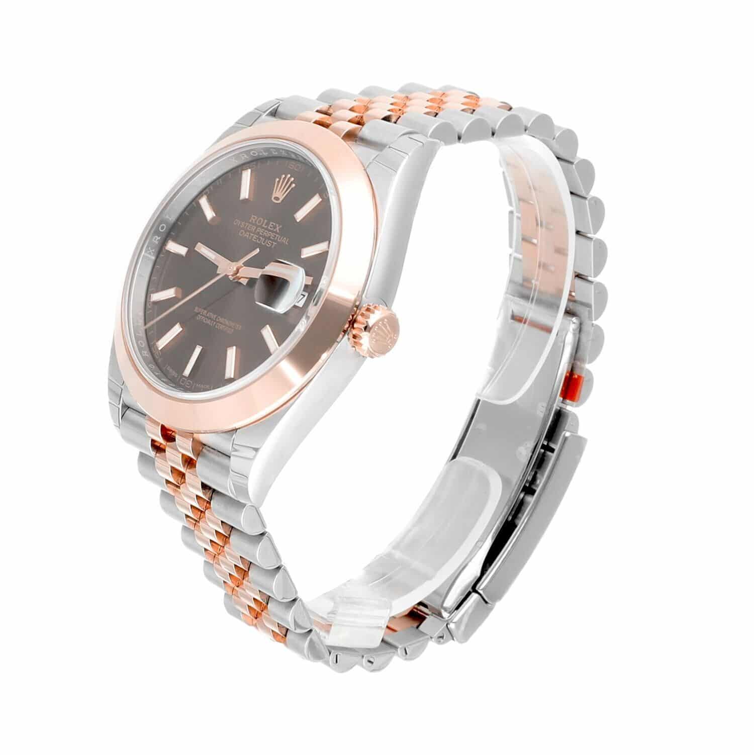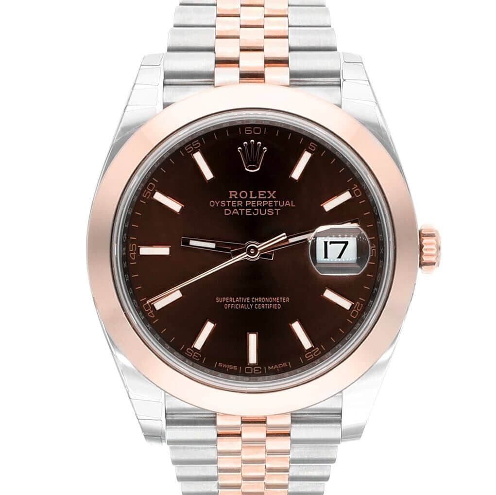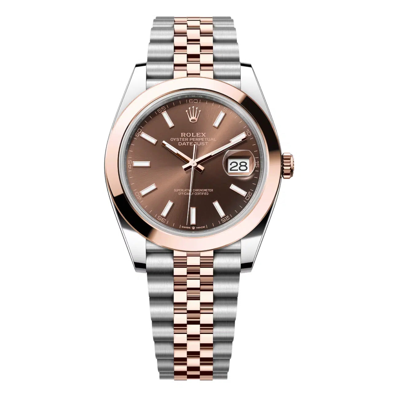 Rolex Datejust 41mm Stainless Steel/Rose Gold Jubilee Mens Watch 126301 Complete, with Factory Stickers. New Old Stock. Has never been worn. Comes complete and is covered by our 2 year in house warranty. Stainless steel case with a stainless steel Rolex jubilee bracelet with 18kt everose gold center links. Fixed 18kt everose gold bezel. Chocolate dial with rose gold-tone hands and index hour markers.