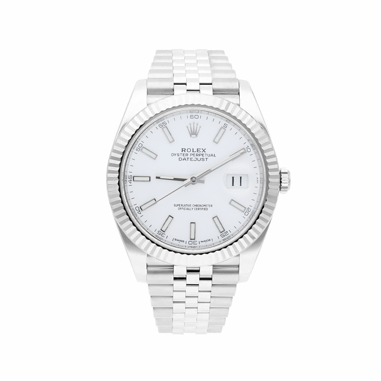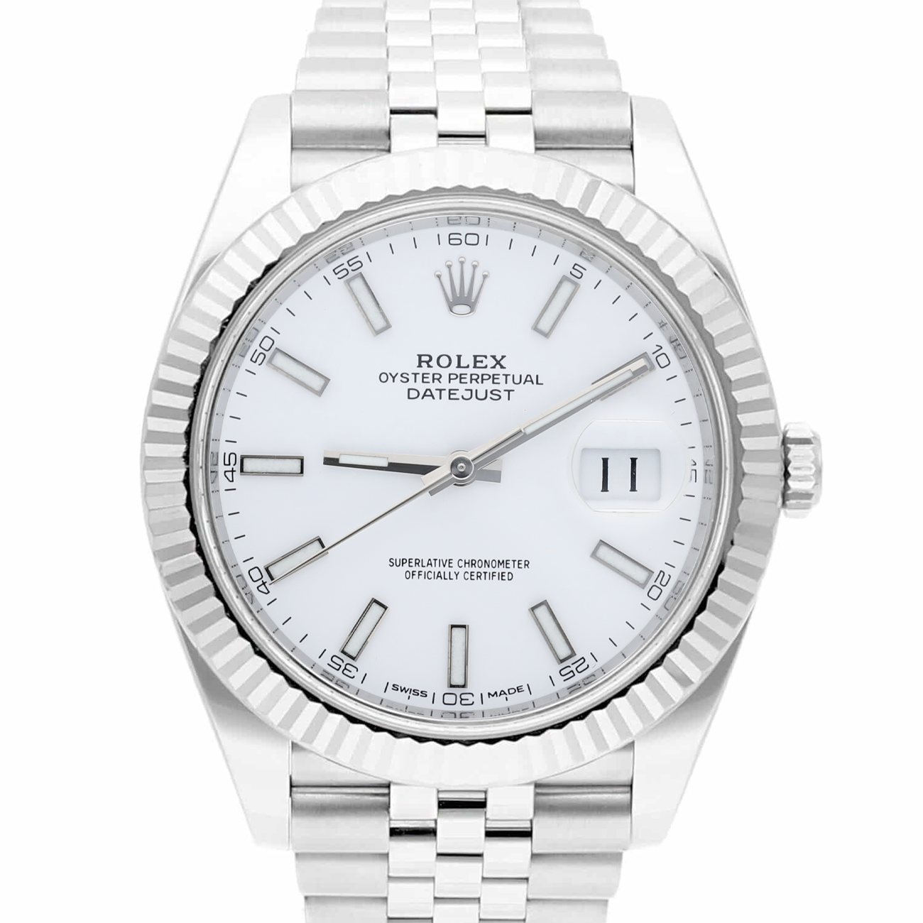 Rolex Datejust 41mm 126334-0010 18k White Gold Fluted Bezel Stainless Steel Jubilee White Dial 2017