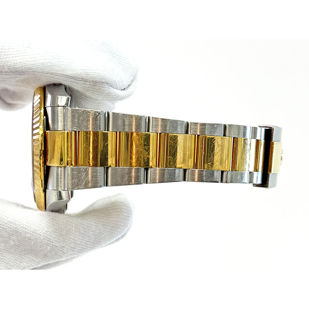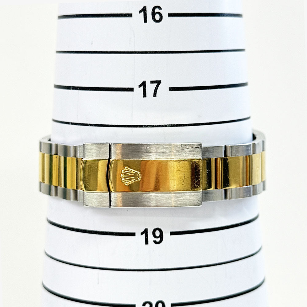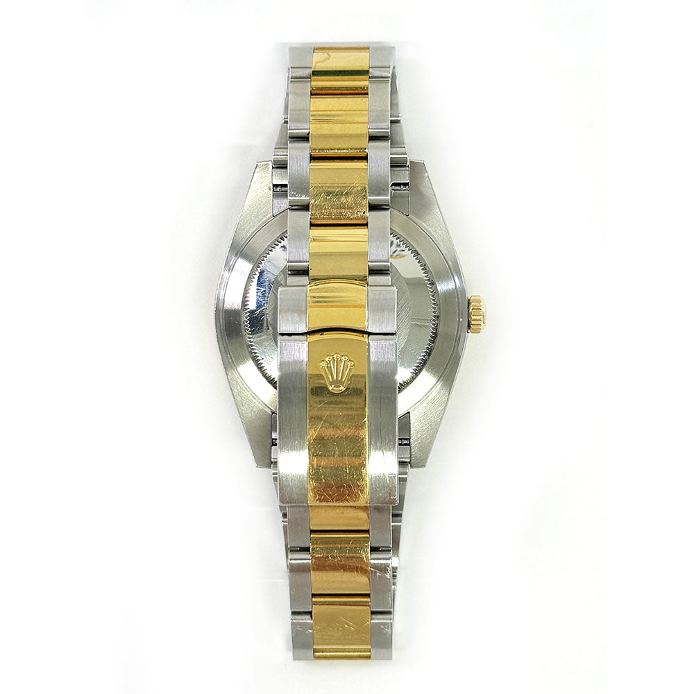 Rolex calibre 3235 perpetual self-winding movement with date at 3 o'clock that changes instantaneously at midnight in a few thousandths of a second. Approximately 70 hours of power reserve. Yellow Rolesor Oyster bracelet made from a combination of 904L steel and 18K yellow gold with flat three-piece links, folding Oysterclasp buckle with Easylink 5mm comfort extension link. Waterproof to 100 meters. Luxury watch style. Watch label: Swiss made.