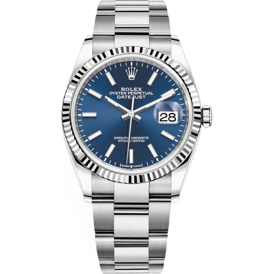 Rolex Datejust Blue Index Dial 36mm 126234-0018 Stainless Steel Oyster Watch 2024