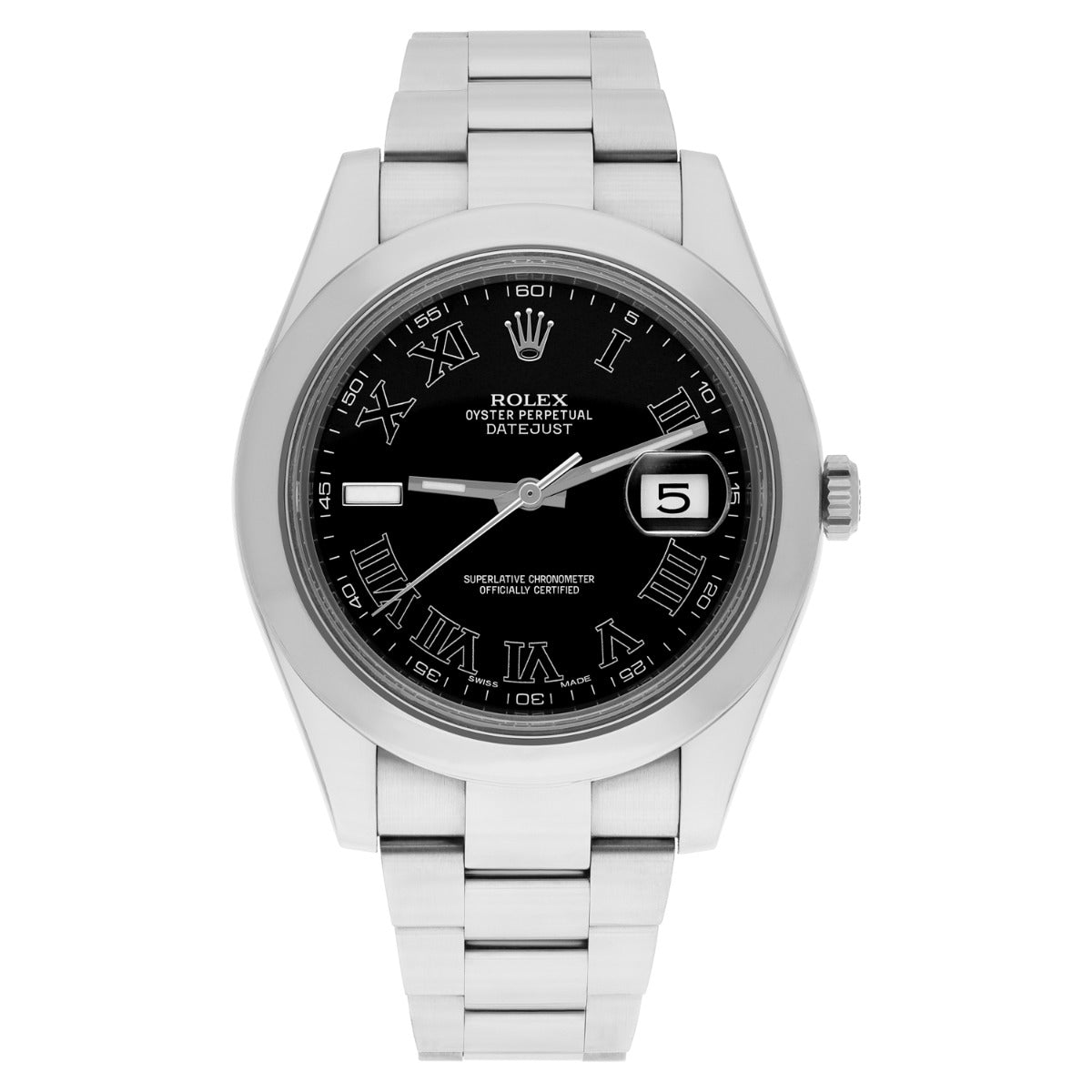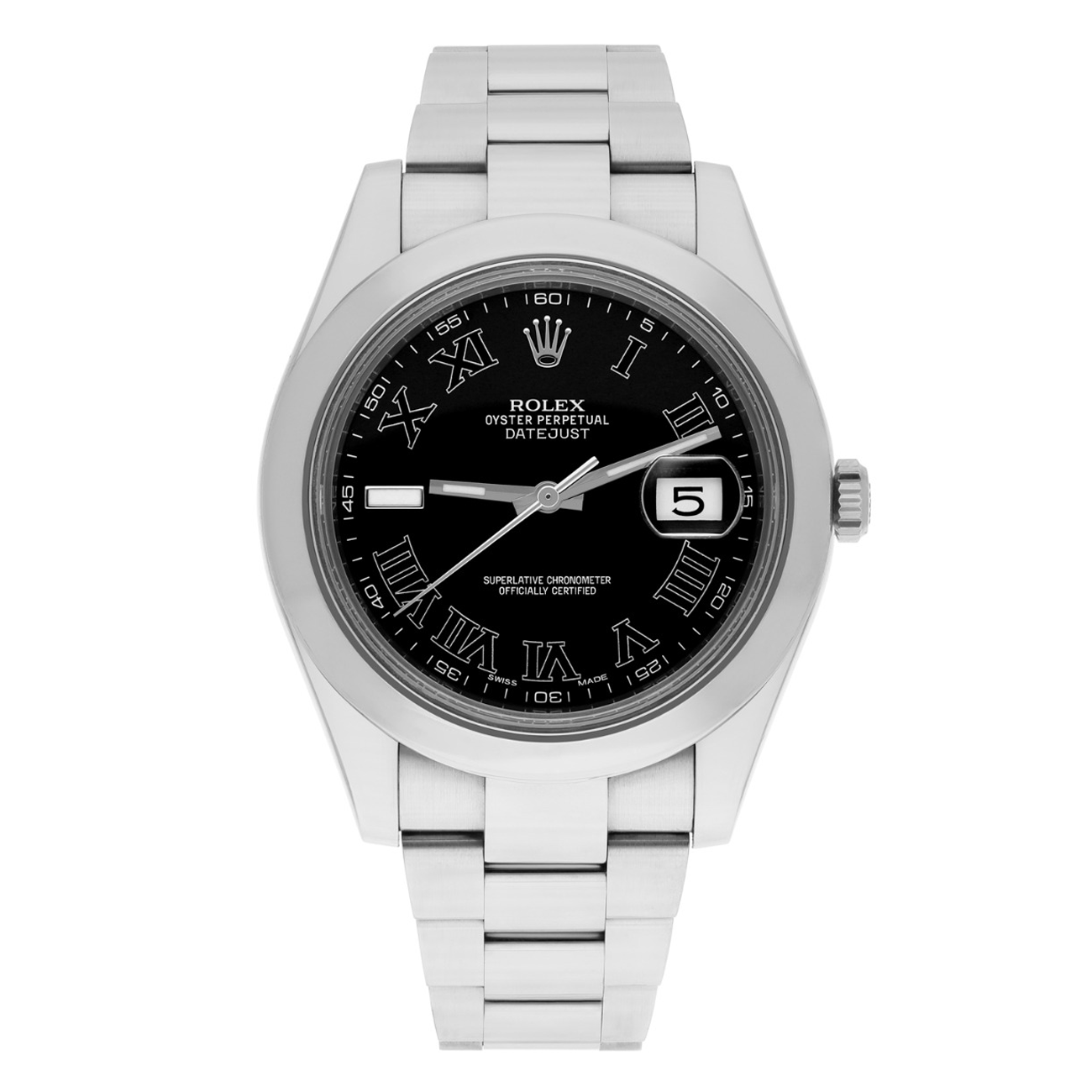 Rolex Datejust II Steel Black Roman Dial Oyster Bracelet Mens 41mm Watch 116300. Watch has been professionally polished, serviced and does not have any visible scratches or blemishes. Mint.