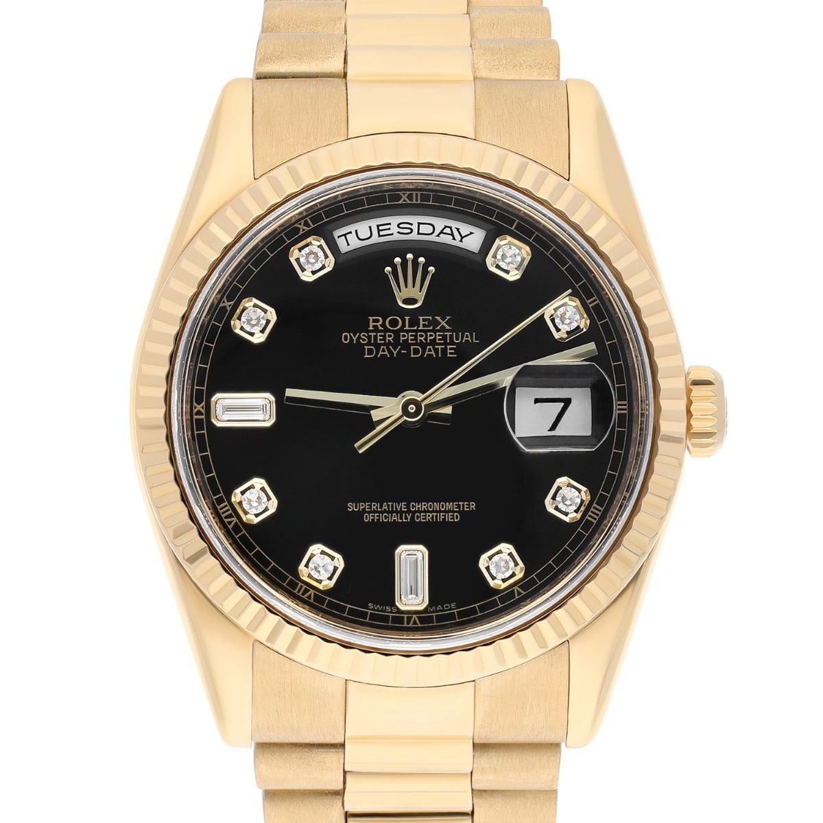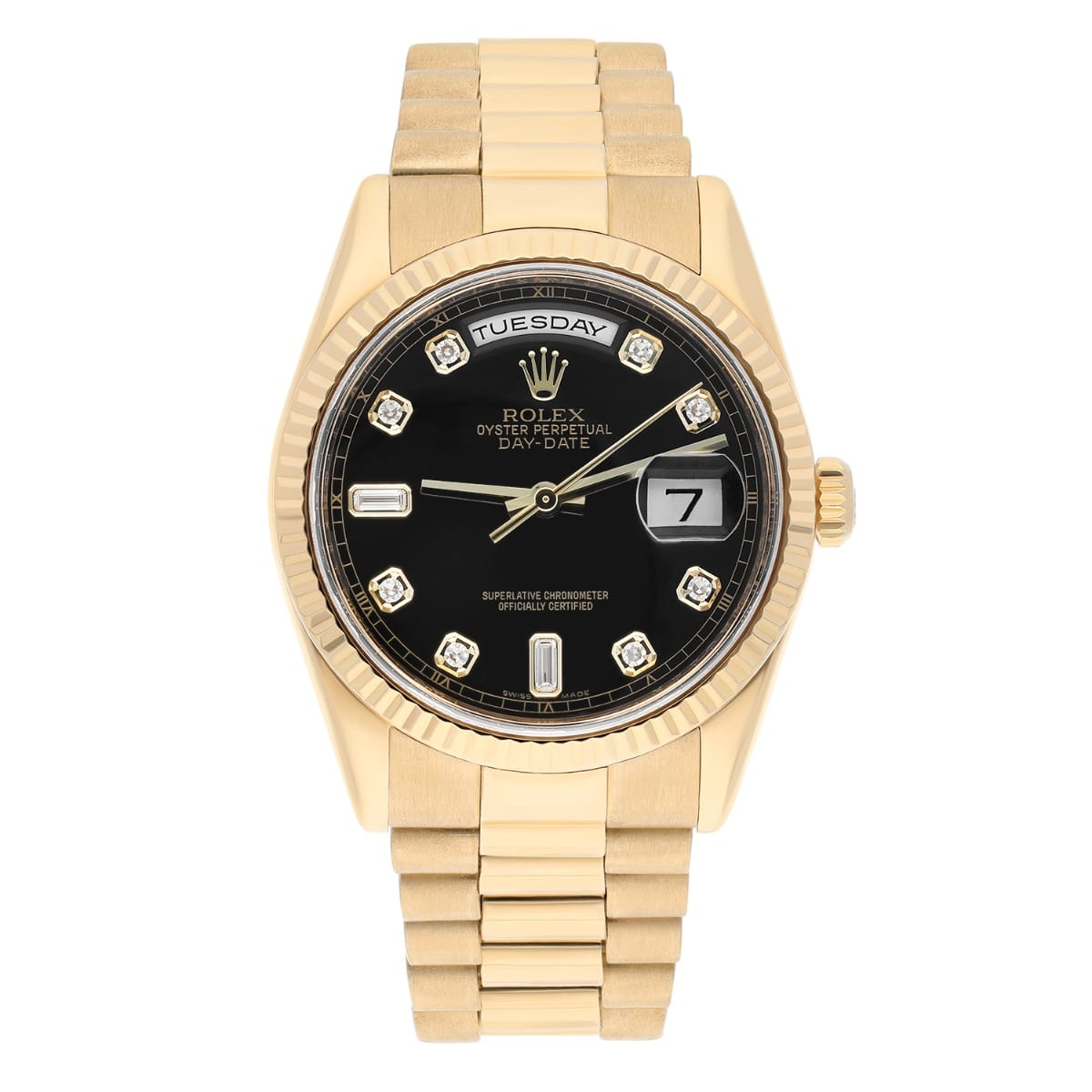 Rolex Day Date 118238-0111 Presidential 36 mm 18K Yellow Gold Black Diamond Dial