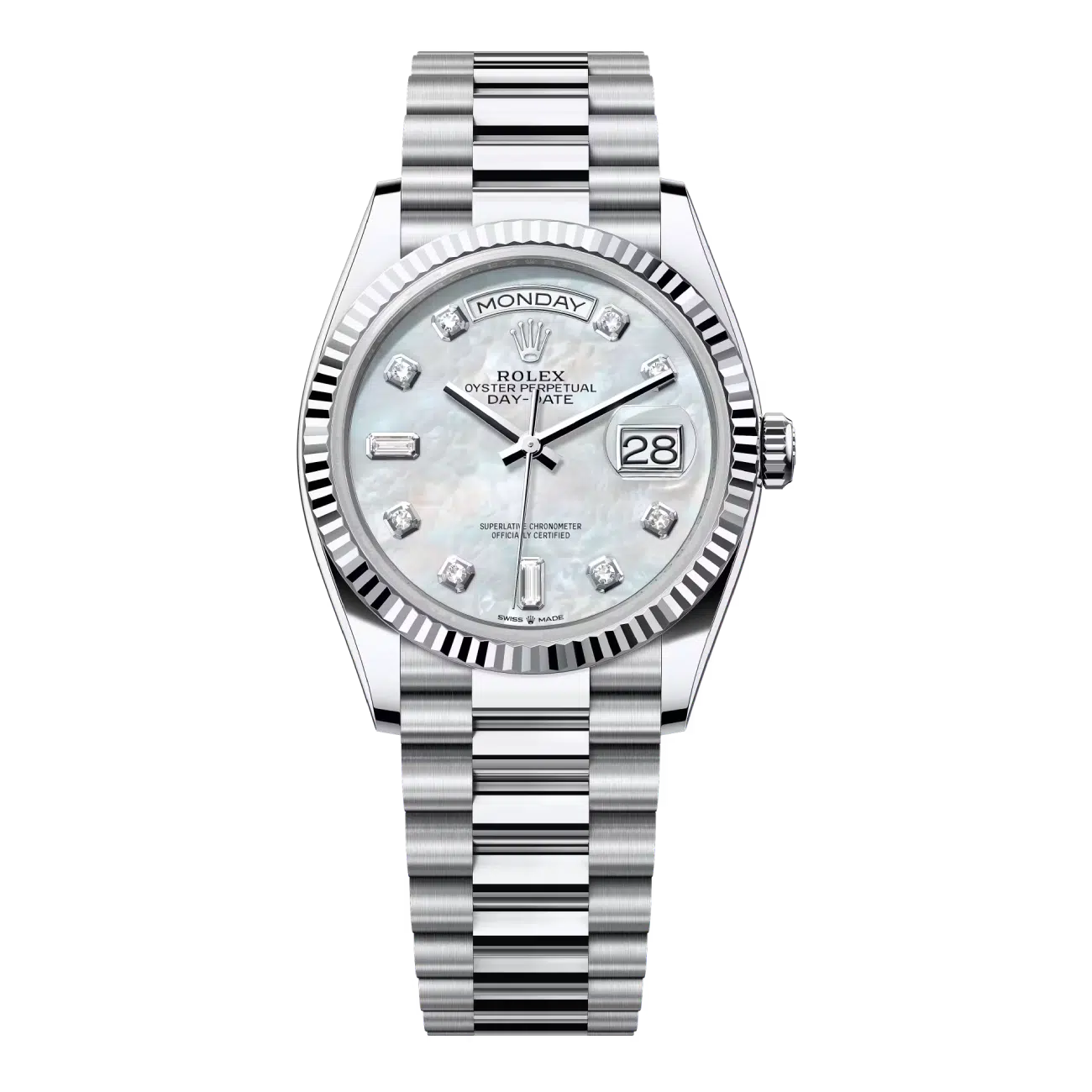 Rolex Day-Date 128236-0002 Platinum MOP Diamond Dial Presidential Watch 2024