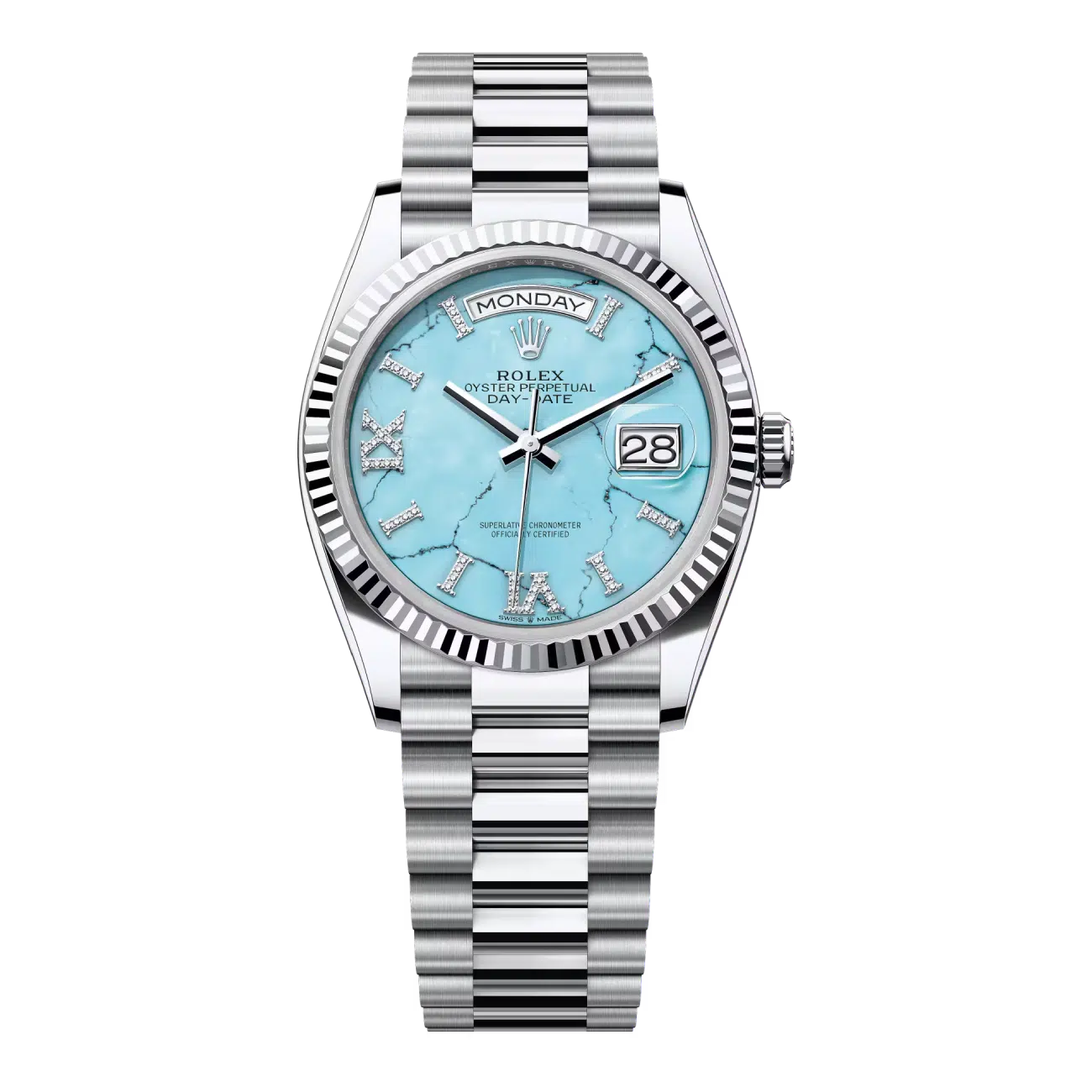 Rolex Day-Date 128236-0011 Platinum Turquoise Roman Dial Presidential Watch 2024