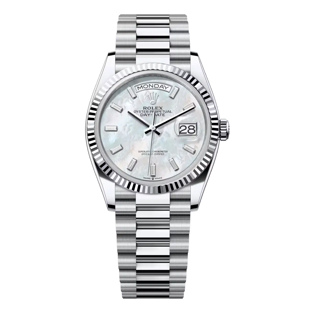 Rolex Day-Date 128236-0021 Platinum MOP Diamond Dial Presidential Watch 2024