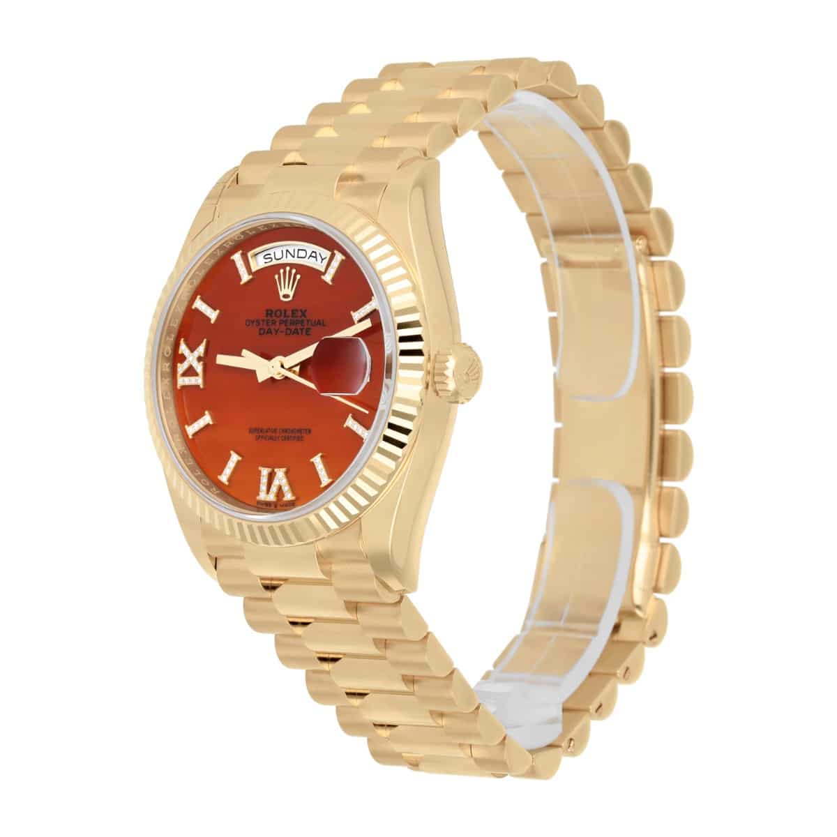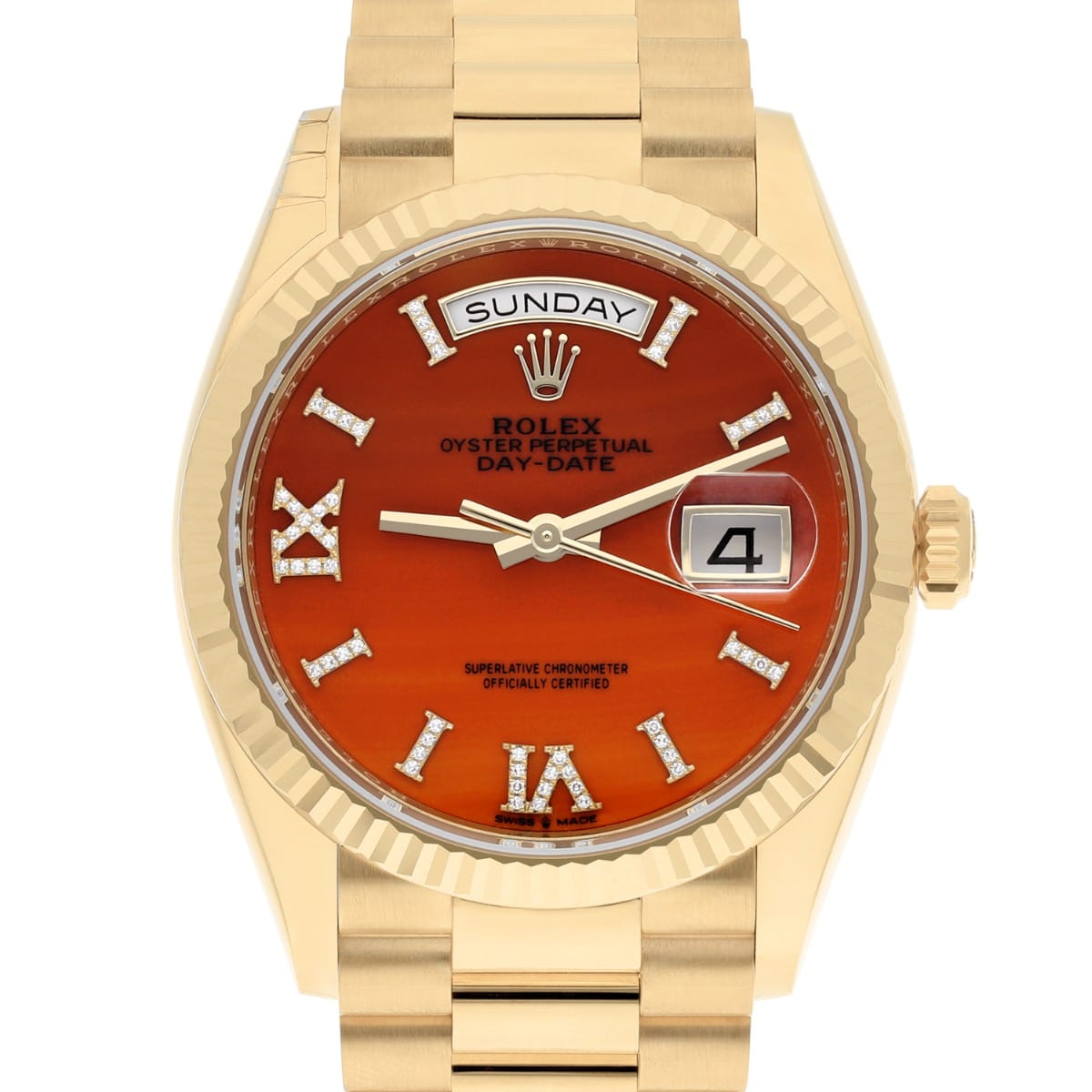 Rolex Day-Date 128238-0088 36mm Yellow Gold Carnelian Roman Diamond Dial Presidential