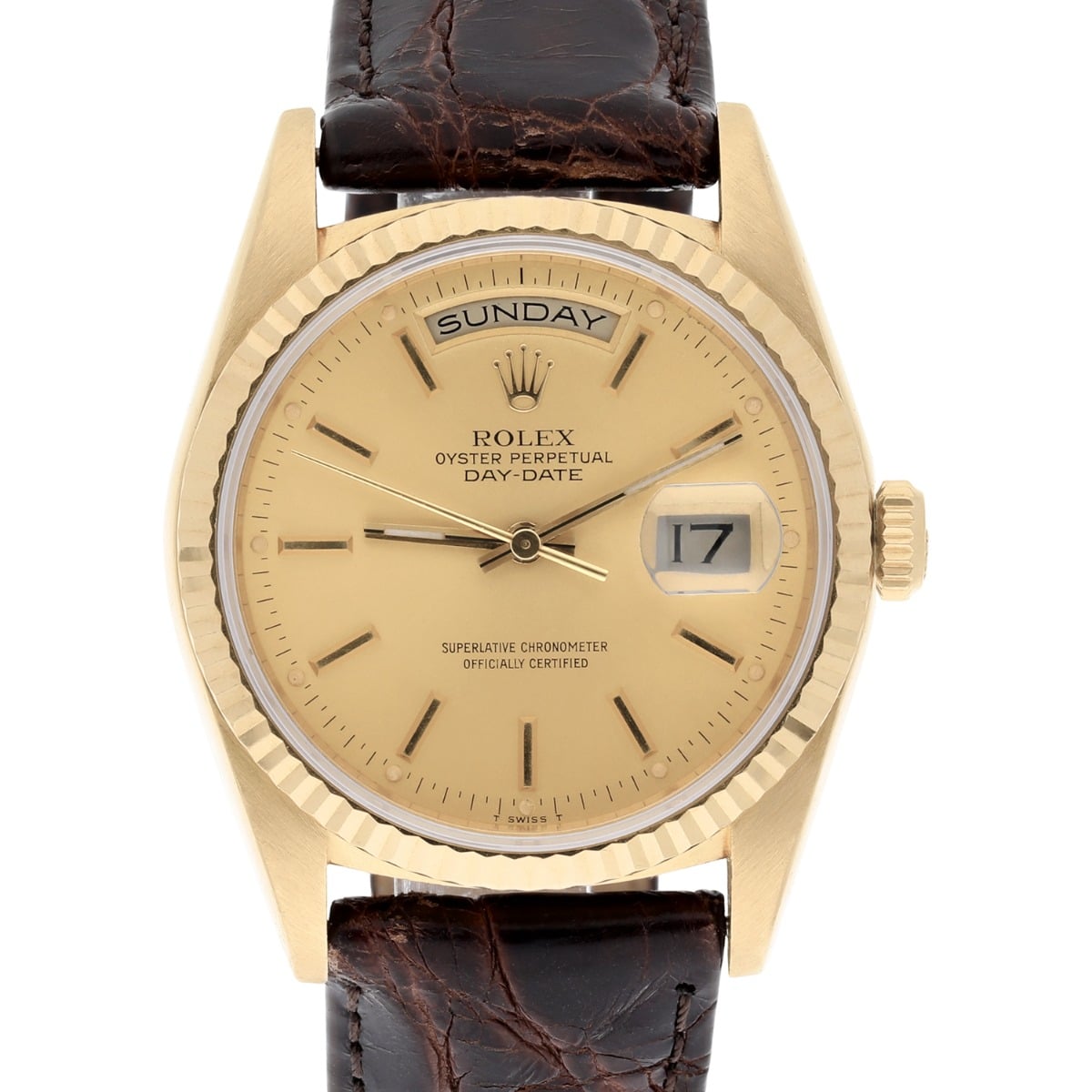 Rolex Day-Date 18238 36mm 18K Yellow Gold Watch Fluted Bezel Champagne Dial