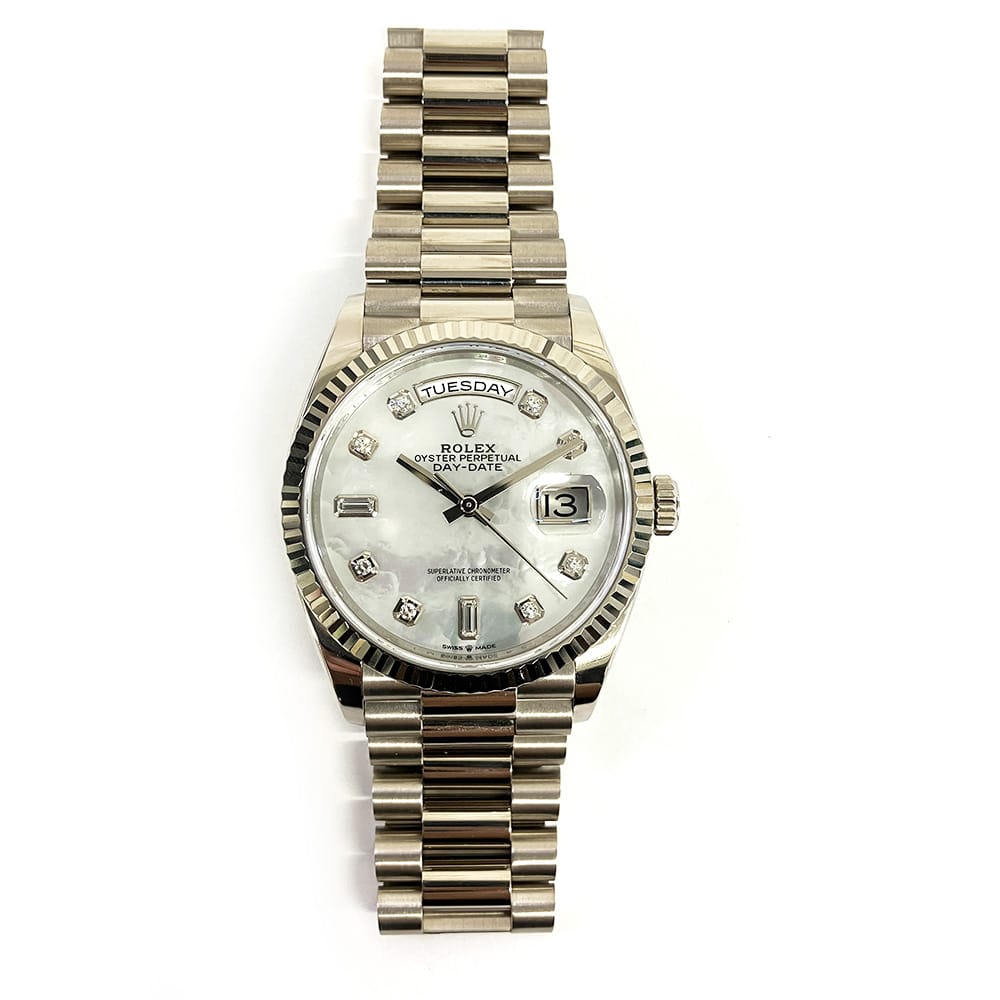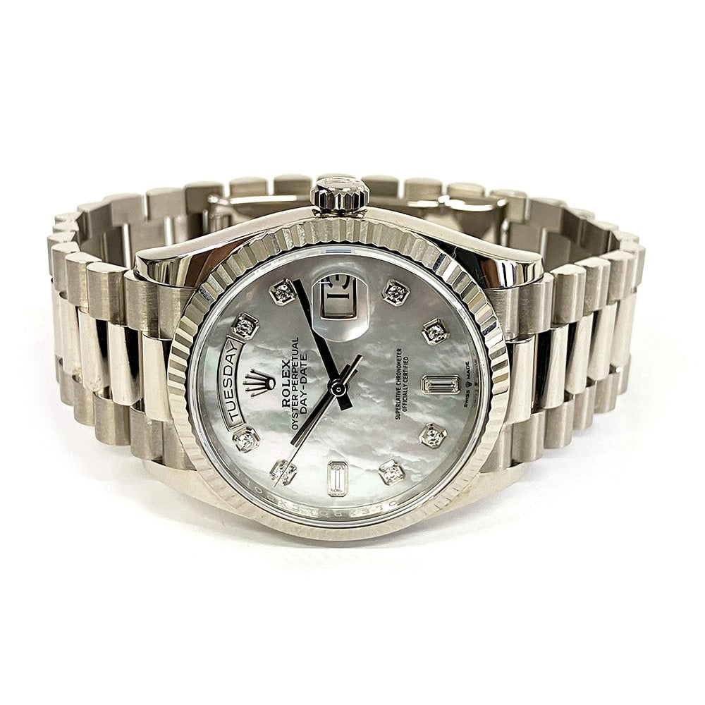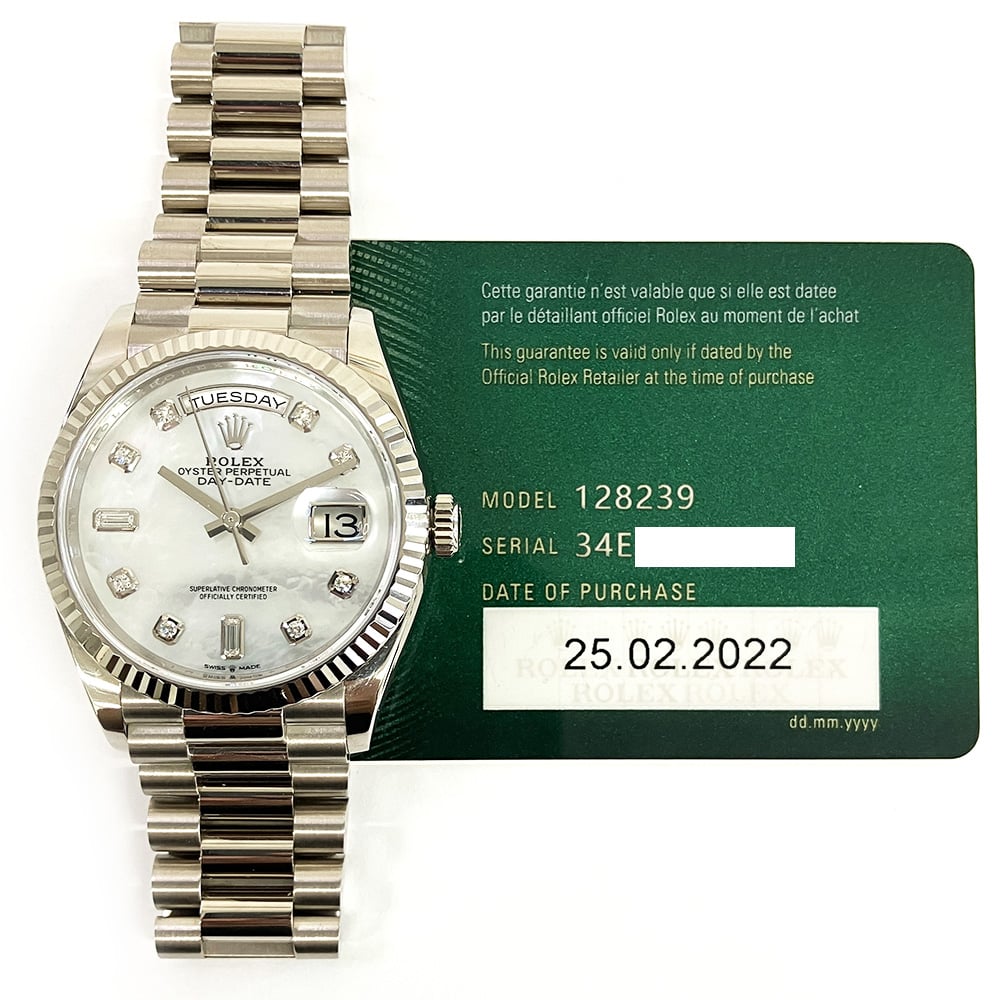 Rolex Day-Date 36 128239-0007 White Gold with White Mother of Pearl Diamond Dial 2022