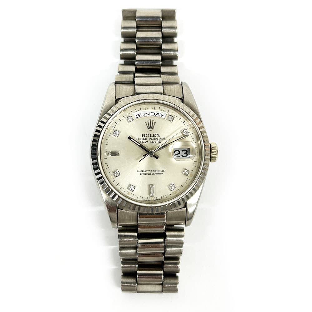 Rolex Day-Date 36 18239 White Gold with Silver Diamond Dial Watch
