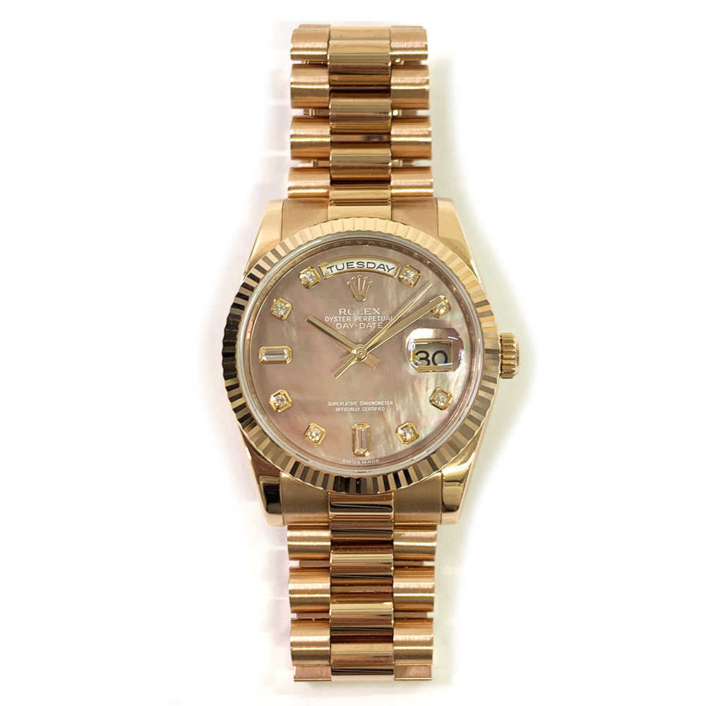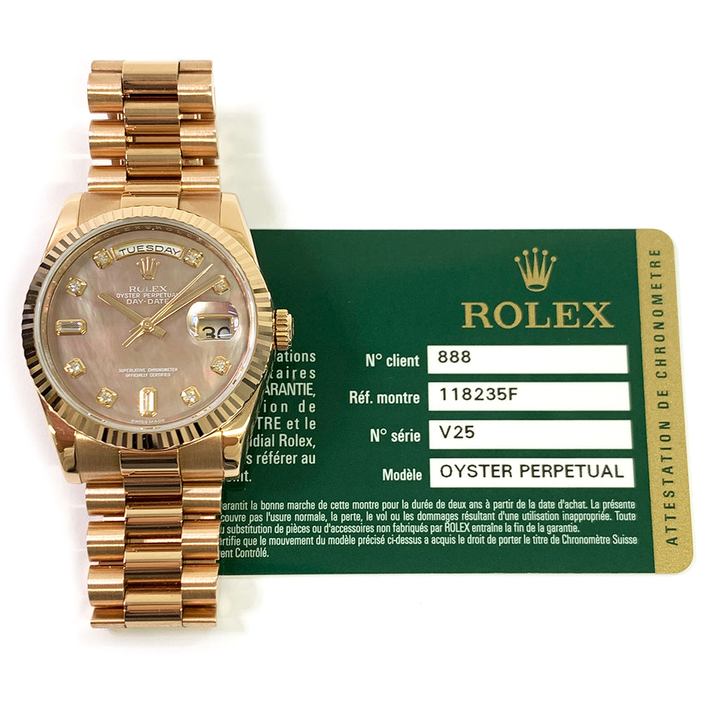 Rolex Day Date 36mm 118235F President Rose Gold Watch Black MOP Diamond Dial MINT 2010