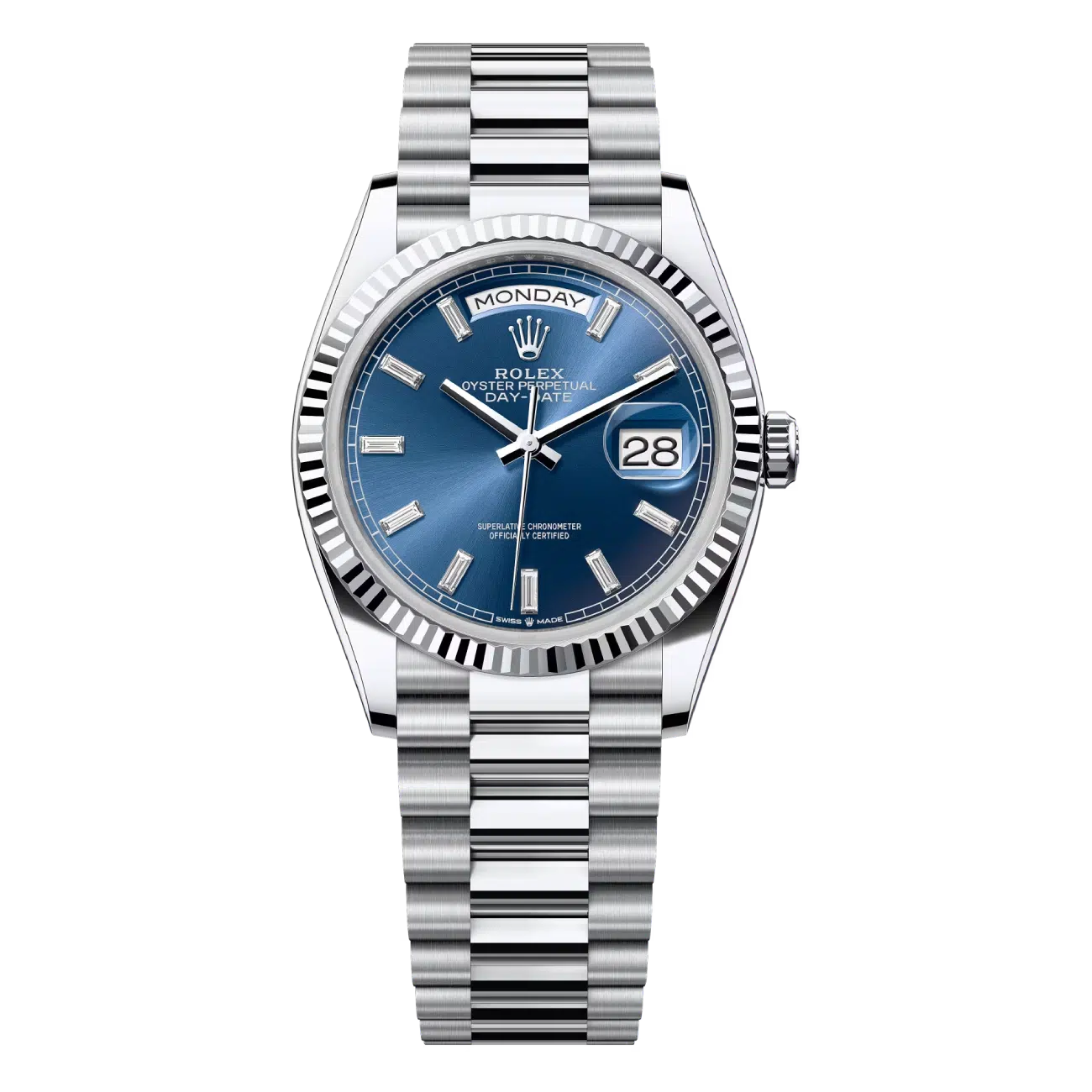 Rolex Day-Date 36mm 128236-0023 Platinum Blue Diamond Dial Presidential Watch 2024
