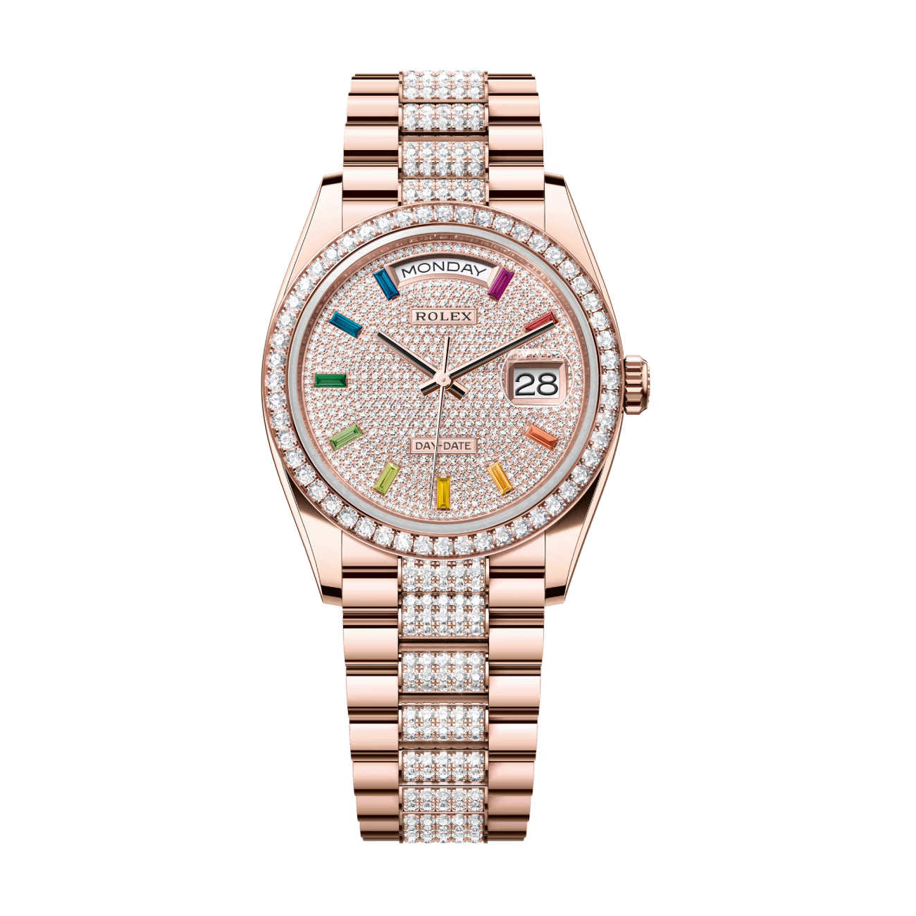 Rolex Day-Date 36mm 128345RBR-0043 Rose Gold with Paved Diamond Dial Watch 2024