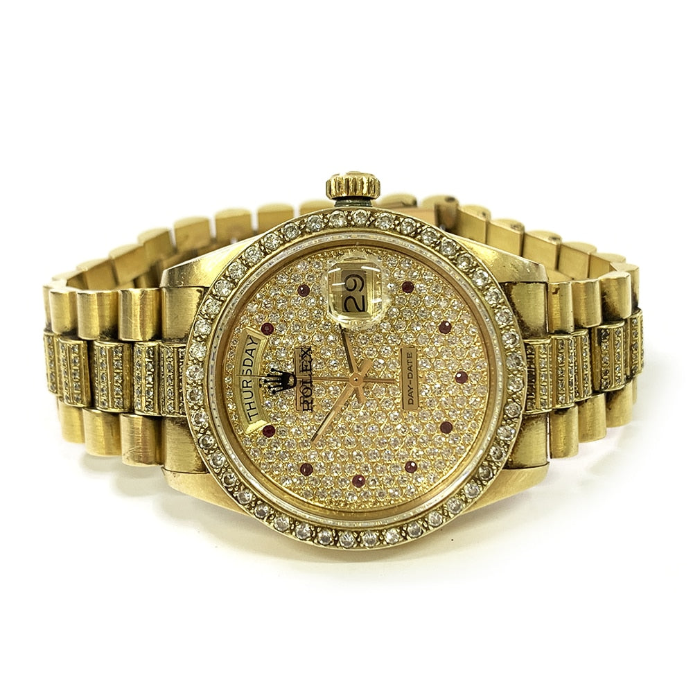Rolex Day Date 36mm 18038 President Yellow Gold Watch Pave Diamond Dial