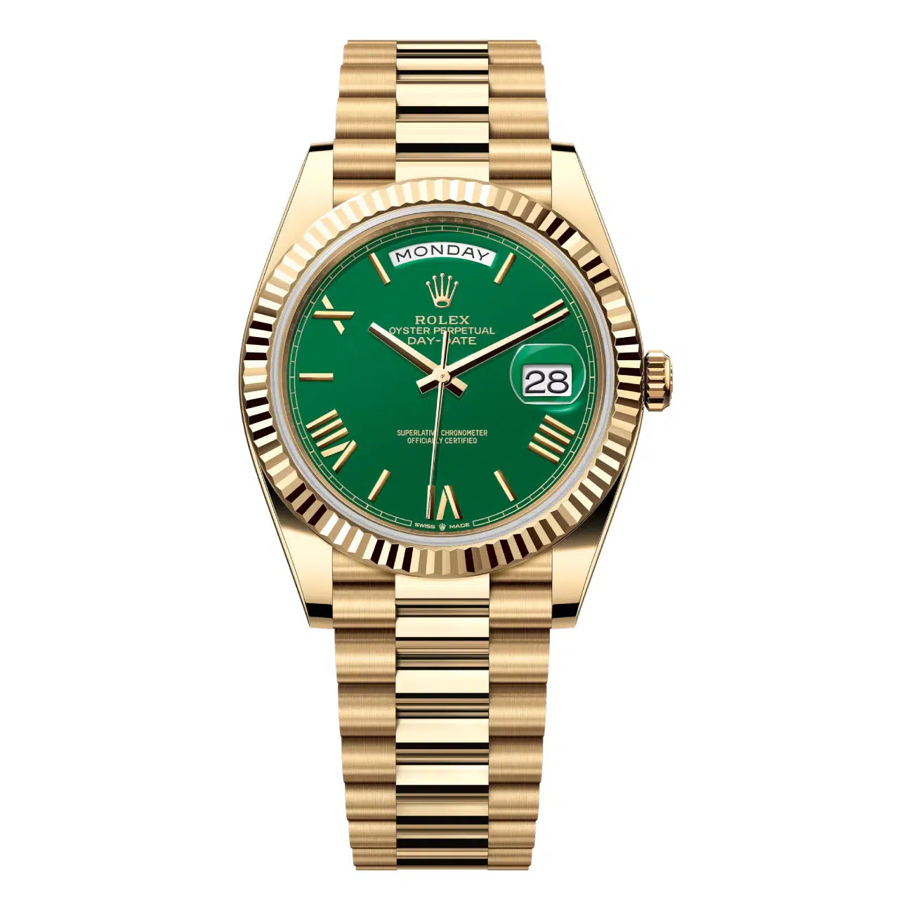 Rolex Day-Date 40 228238-0061 Yellow Gold Fluted Bezel Green Dial 2024