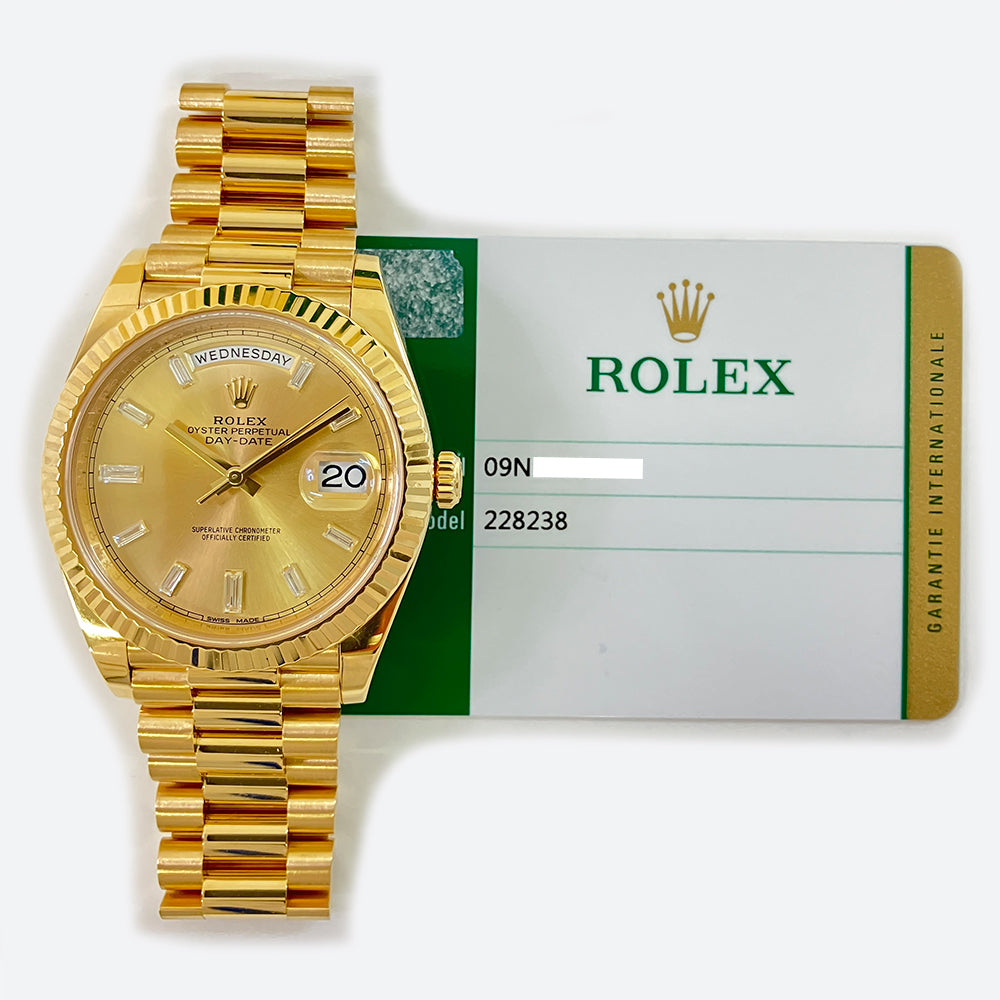 Rolex Day-Date President 40mm 228238 YG Fluted Bezel Champagne Diamond Dial President Bracelet 2015