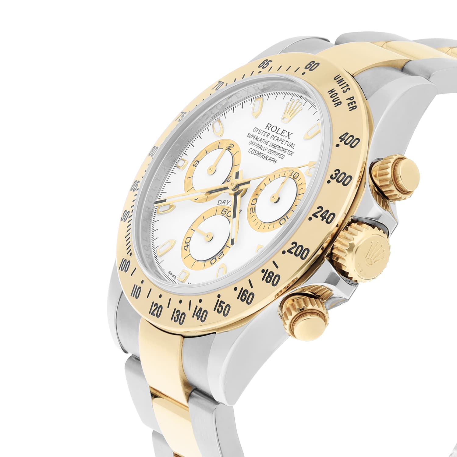 Rolex Daytona 116523 Stainless Steel Yellow Gold White Dial Mens Watch