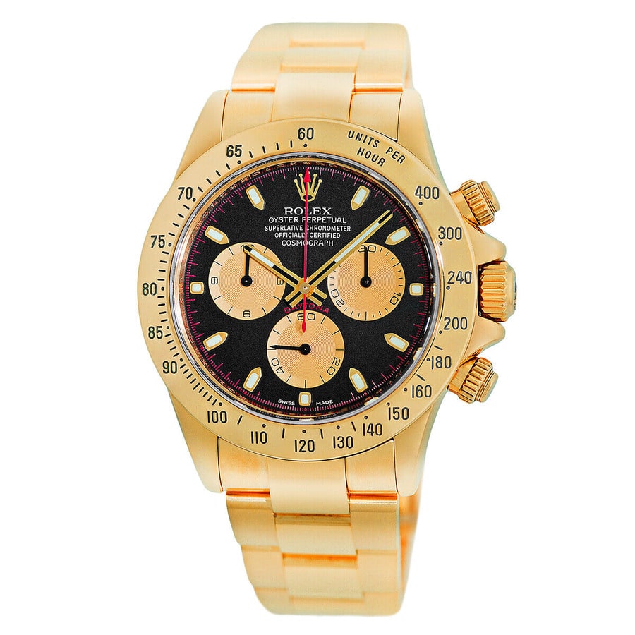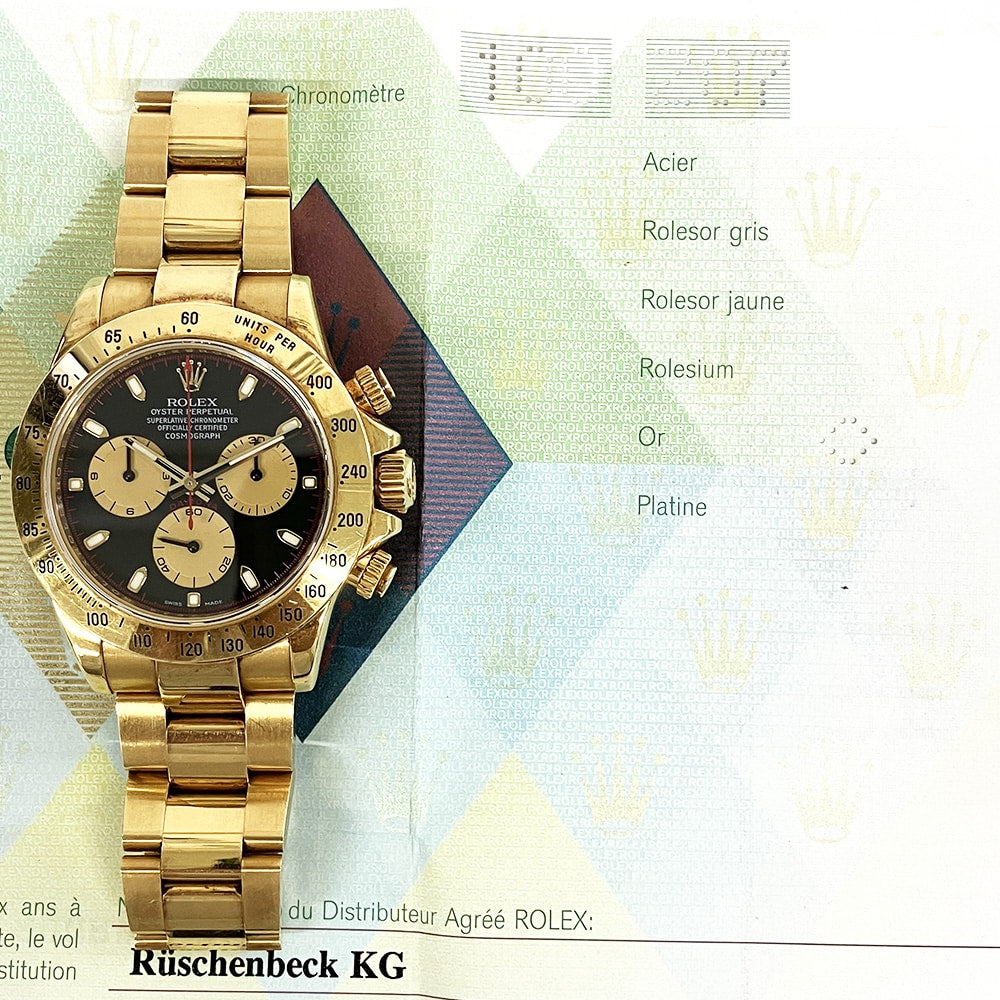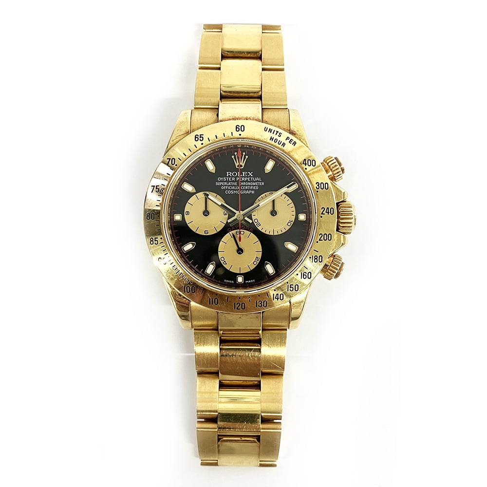 Rolex Daytona 116528 Black Paul Newman Cosmo Yellow Gold Oyster Bracelet Watch 2006