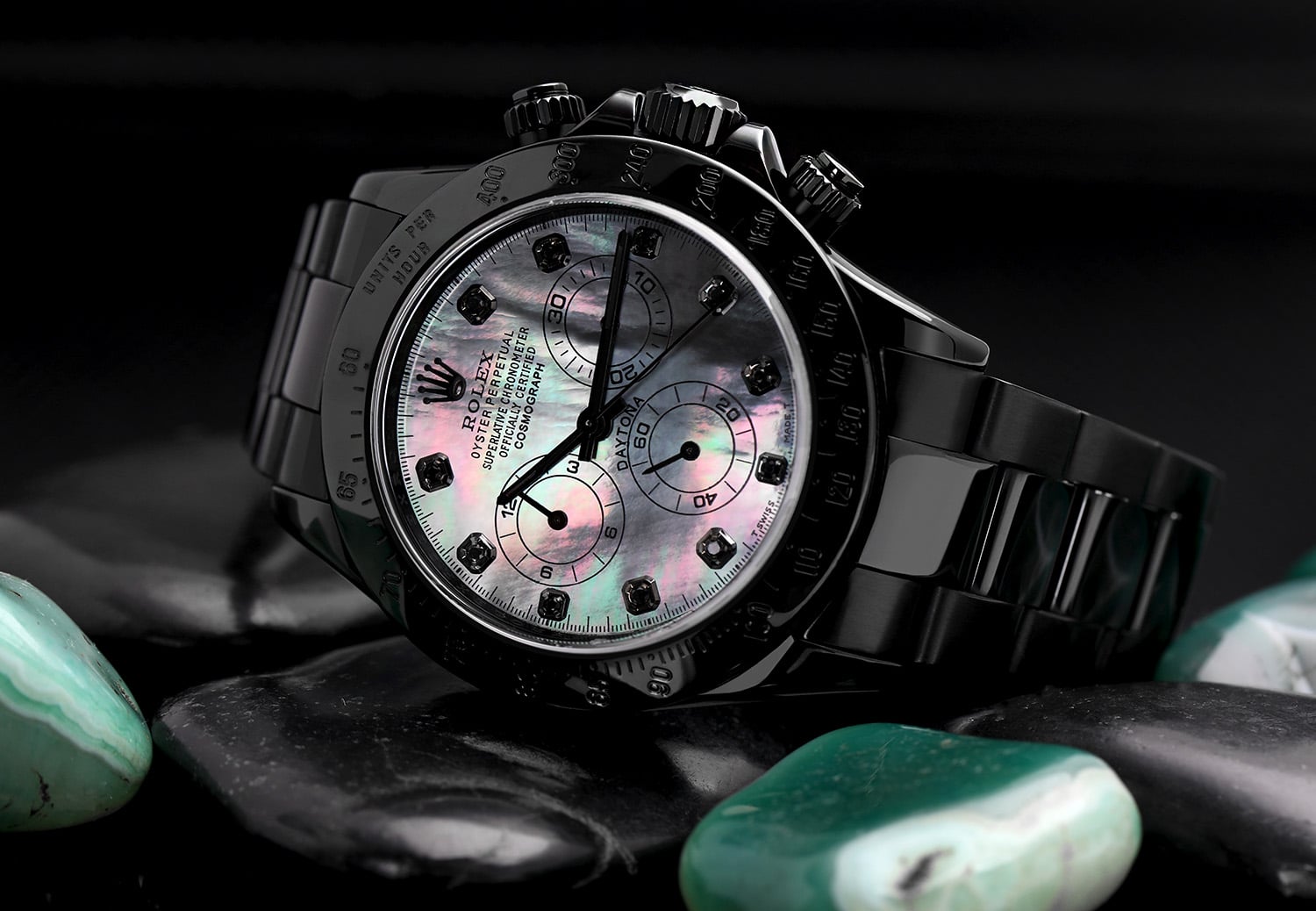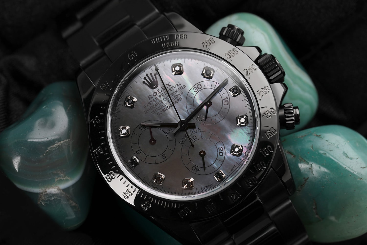 Rolex Daytona Black MOP Diamond Dial Black PVD/DLC Coated Watch 116523
