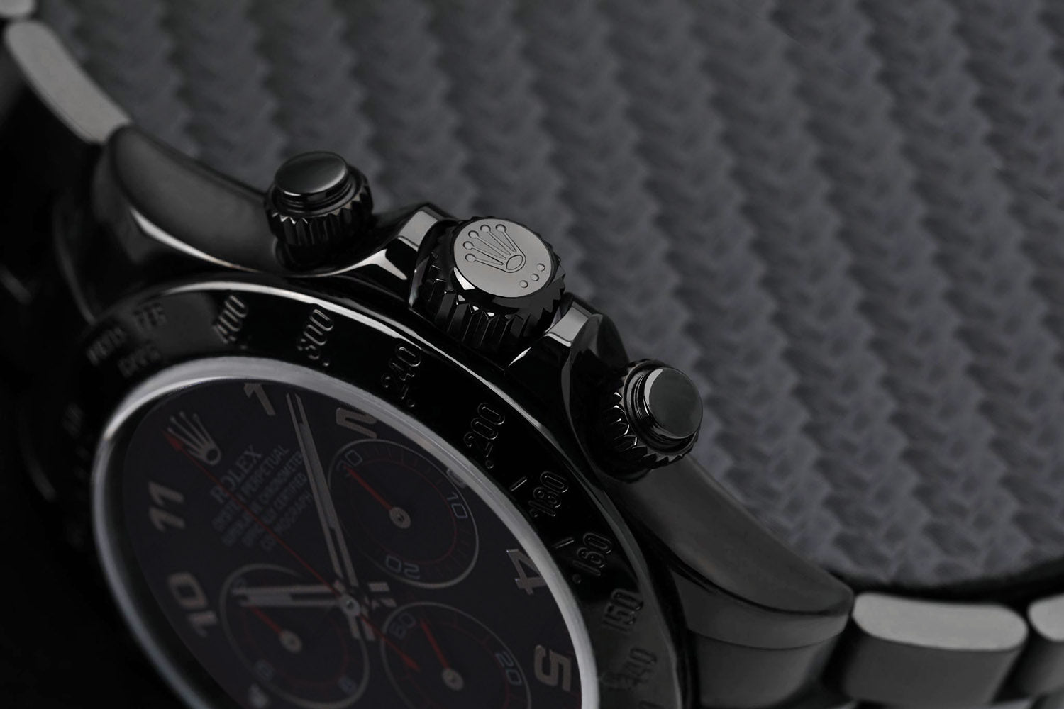 Rolex Daytona Black/Red Arabic Racing Dial Black PVD/DLC Coated Watch 116523