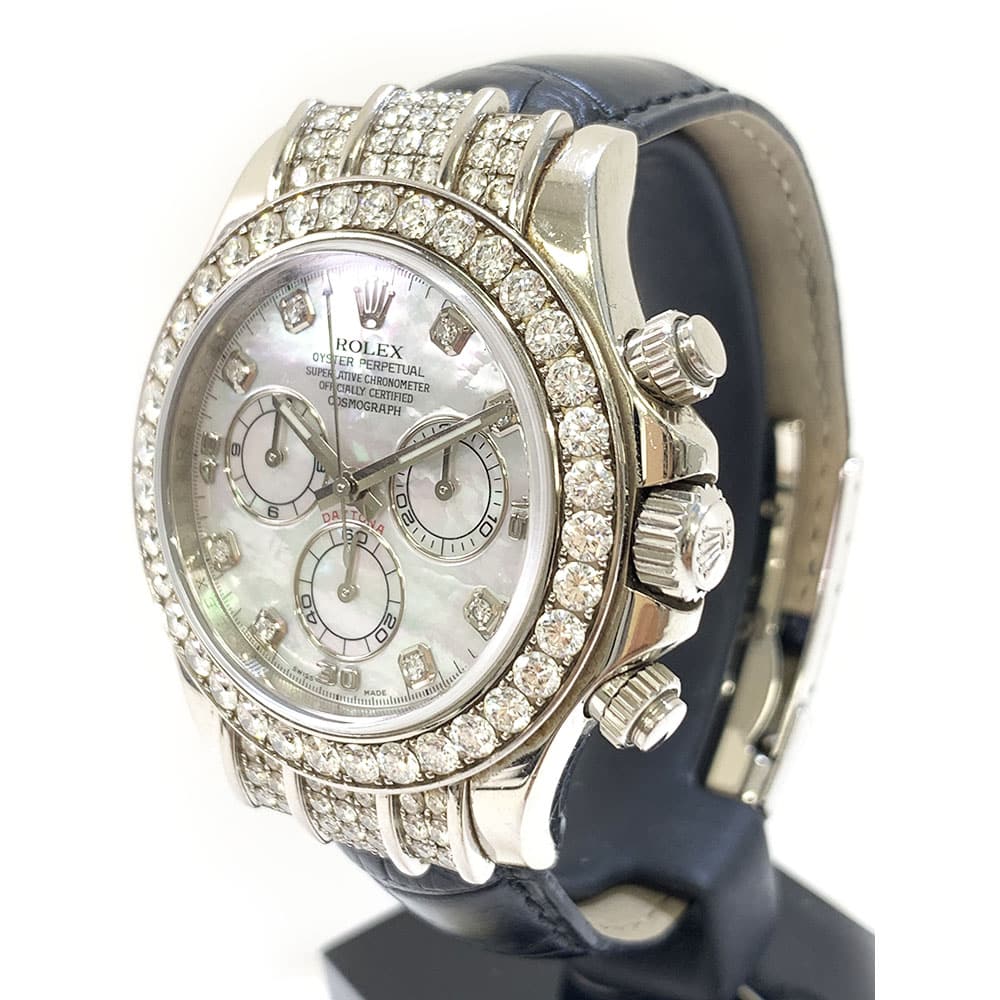 Rolex Daytona Diamond Bezel White MOP Dial 40mm 116599RBR White Gold Black Leather Watch 2013