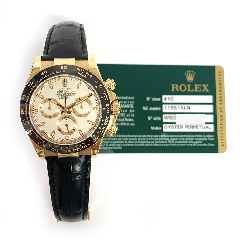 Rolex Daytona Ivory Dial 40mm 116515LN Rose Gold with Black Crocodile Leather Watch 2014