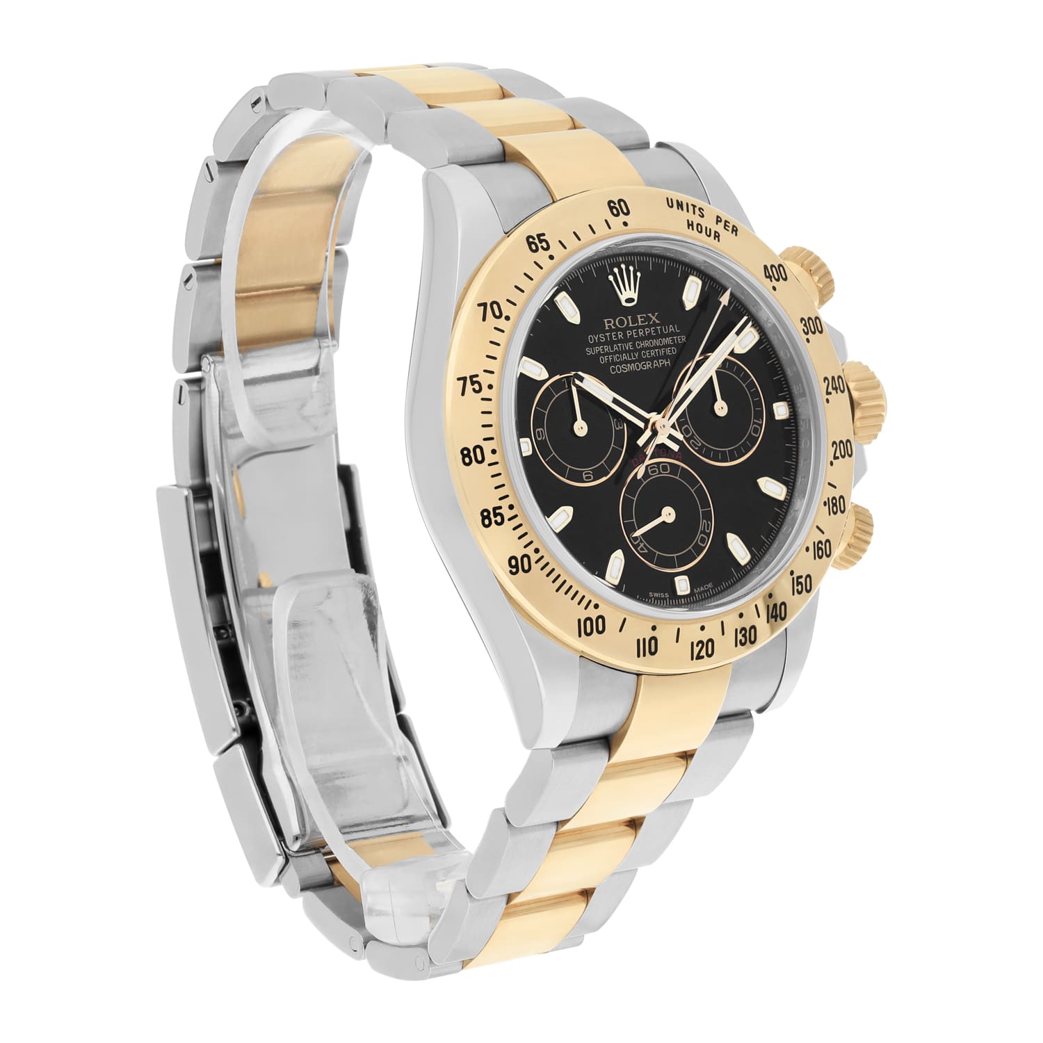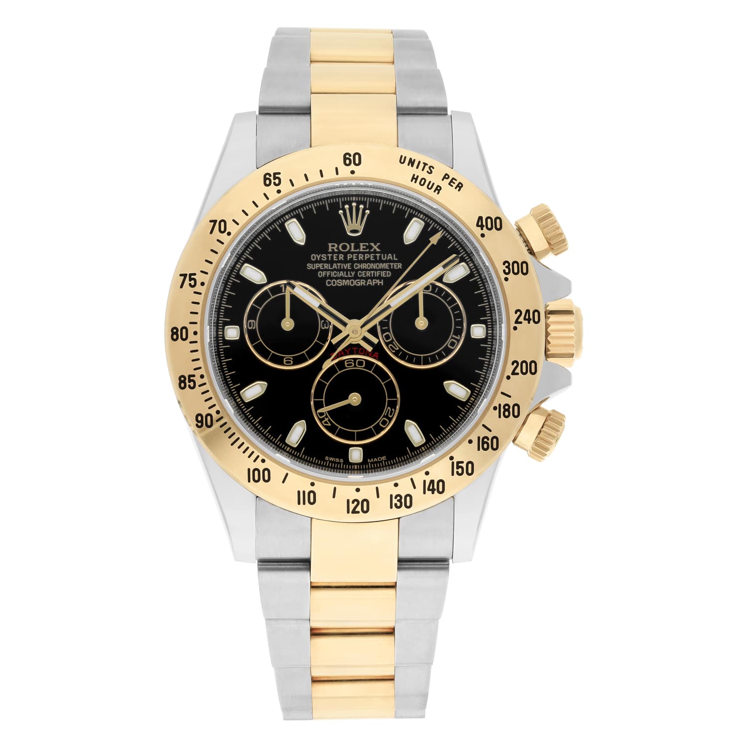 Rolex Daytona Stainless Steel Yellow Gold Black Dial Mens Watch 116523