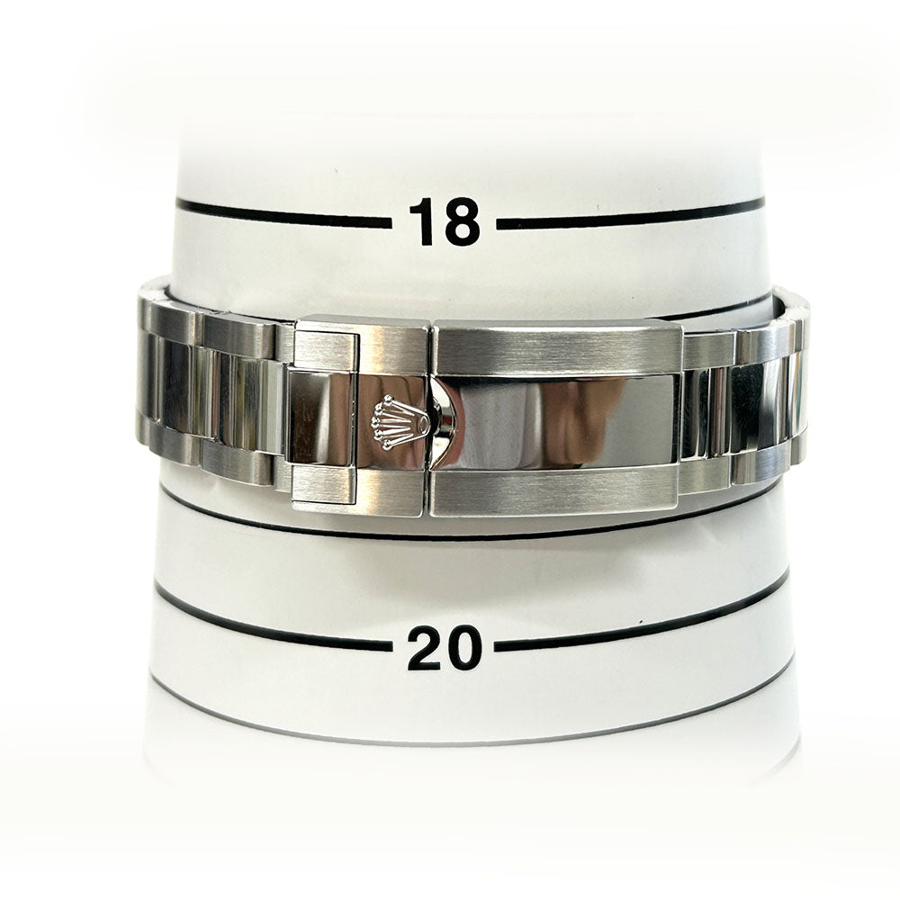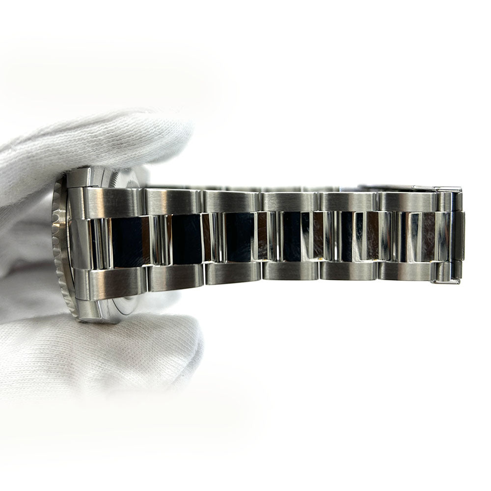 40mm stainless steel case with Oystersteel monobloc middle case, screw-down crown, bidirectional rotatable 24-hour graduated bezel with black and blue Cerachrom insert and engraved numerals, scratch-resistant sapphire crystal with cyclops lens over the date, black dial, hour markers set with Chromalight, Rolex calibre 3285 self-winding movement with second time-zone hour hand and instantaneous date, approximately 70 hours of power reserve, stainless steel Oyster bracelet with flat three-piece links, folding Oysterlock buckle with Easylink 5mm comfort extension link. Waterproof to 100 meters. MINT.