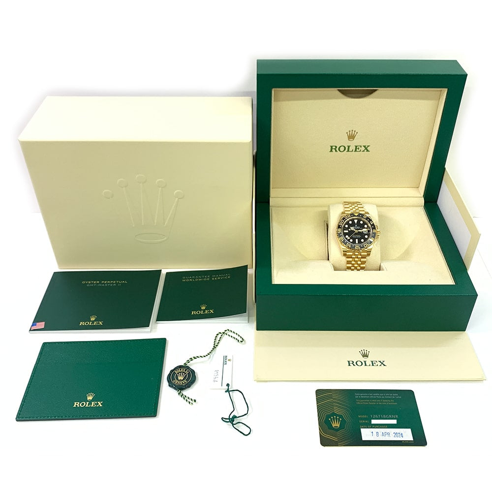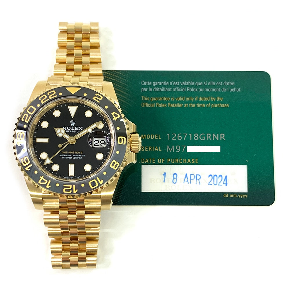 Rolex GMT-Master II 40mm Jubilee 126718GRNR Yellow Gold Watch Black Dial 2024