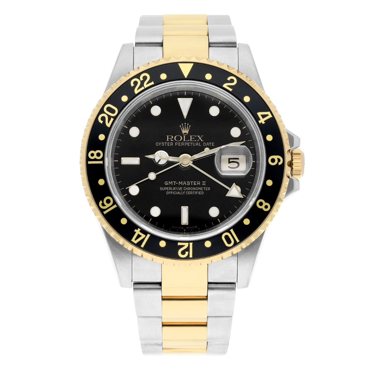 Rolex GMT Master II Black Dial Yellow Gold Steel Mens Watch 16713 Complete 2008