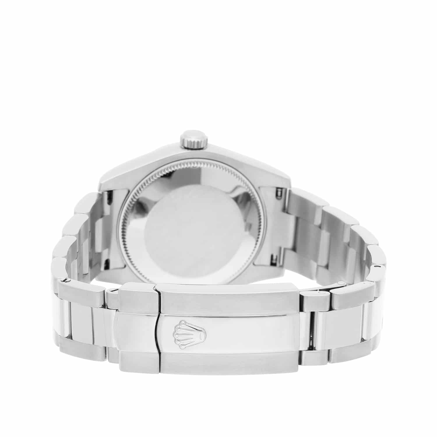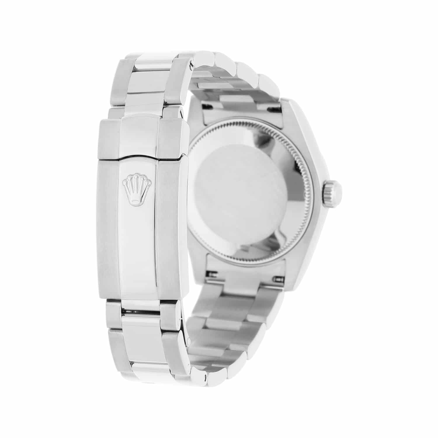 The sale includes a Rolex box and an appraisal certificate which states the watch's credentials. Attached to the appraisal certificate is our 1 year mechanical warranty. Silver-tone stainless steel case with a silver-tone stainless steel oyster bracelet. Fixed 18kt white gold bezel.