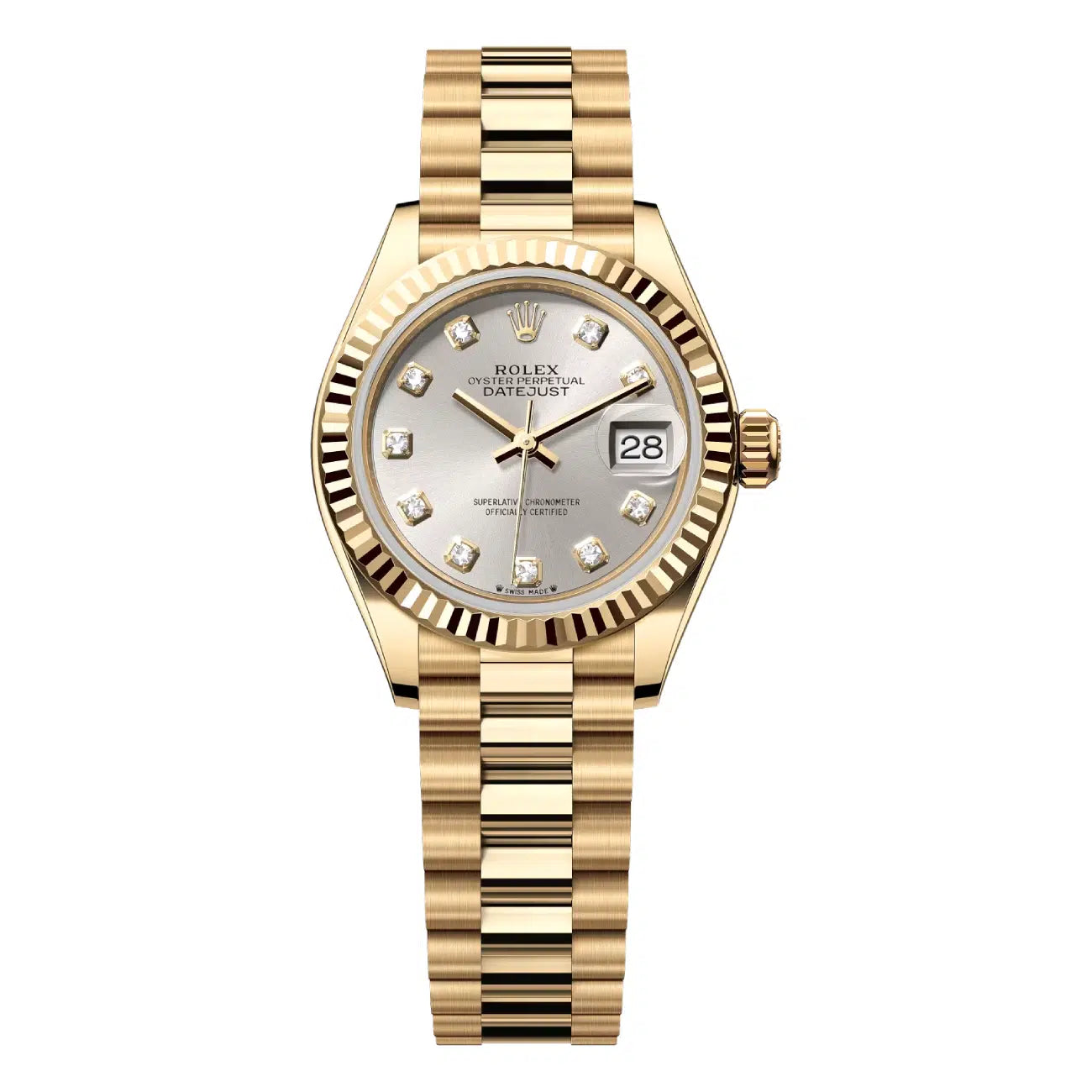 Rolex Lady-Datejust President 28mm 279178-0015 Yellow Gold Watch Silver Diamond Dial 2024