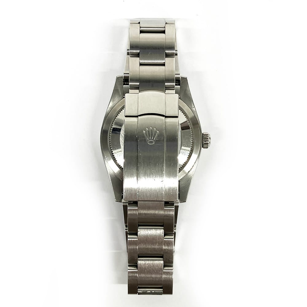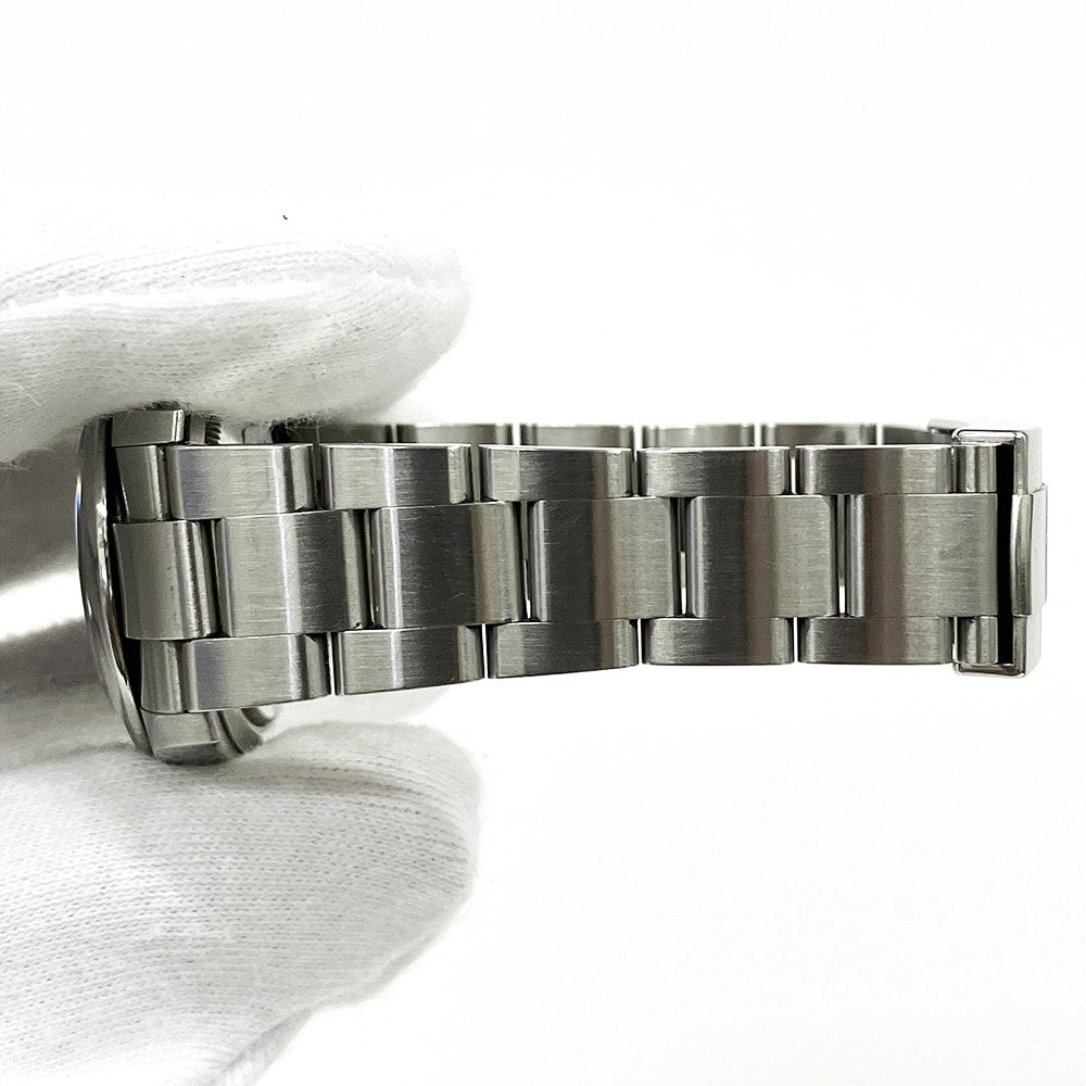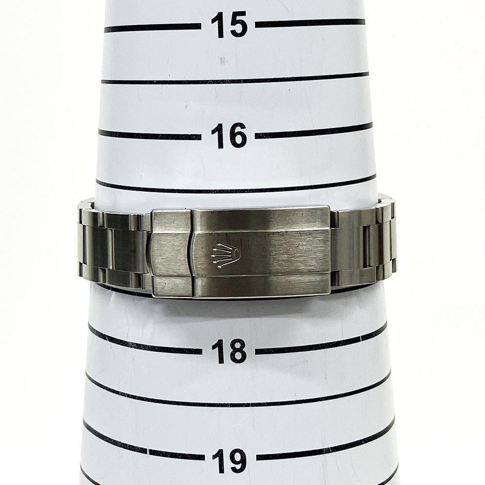 Oyster bracelet with flat three-piece links, folding Oysterclasp buckle with Easylink 5mm comfort extension link. Waterproof to 100 meters/330 feet. Luxury watch style. Watch label: Swiss made.