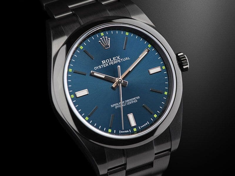 Rolex Oyster Perpetual Blue Dial Black PVD/DLC Coated Stainless Steel Watch 114300