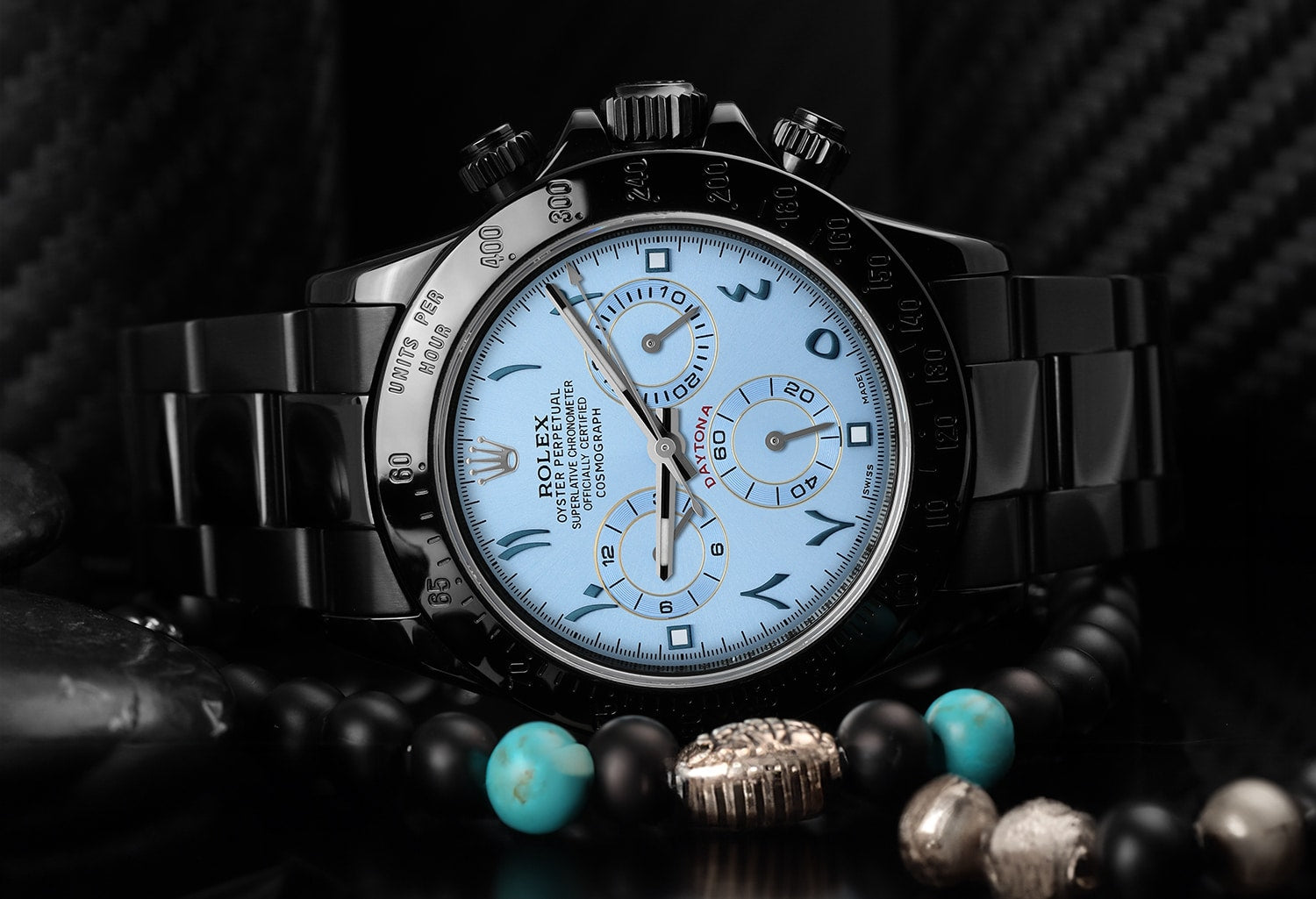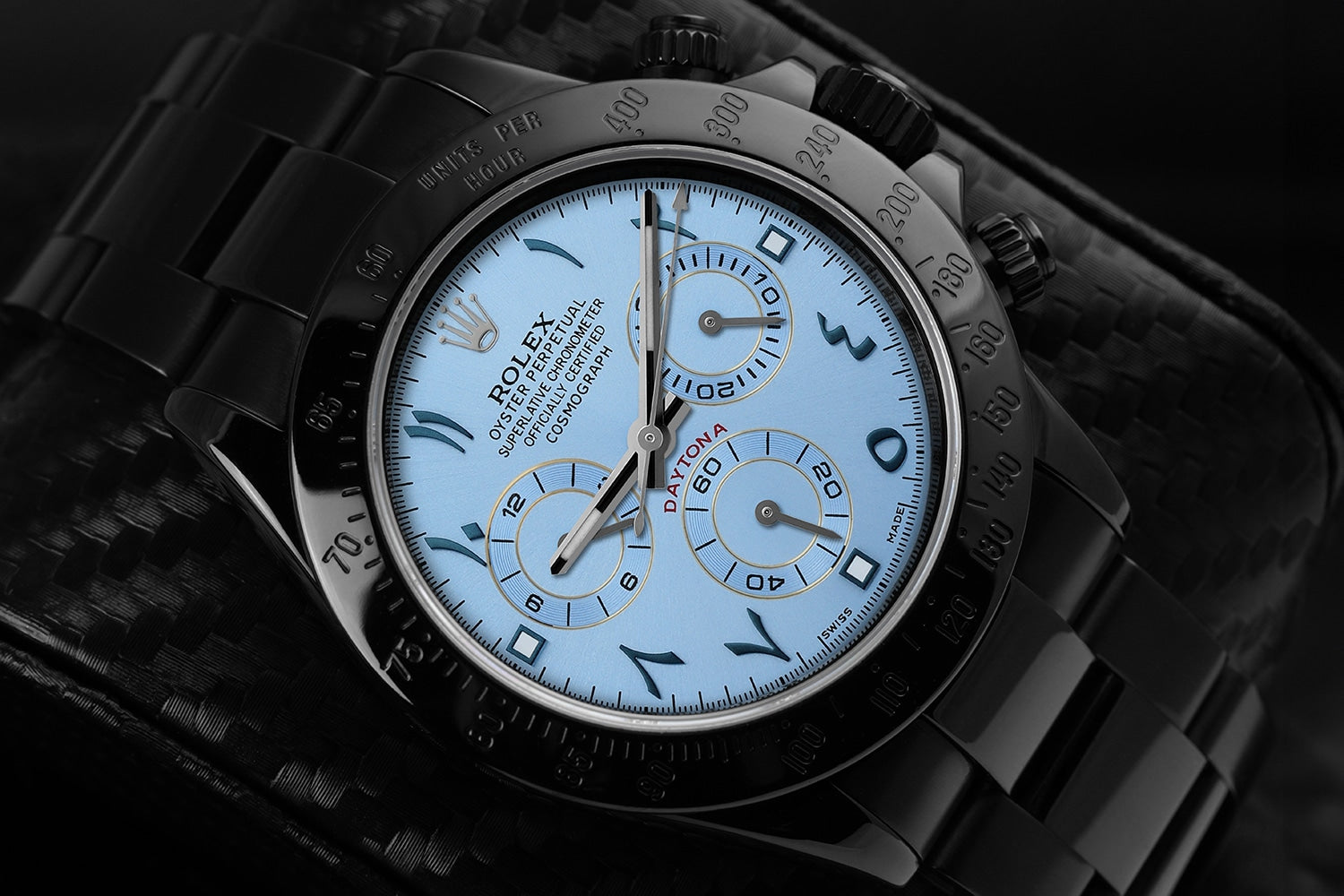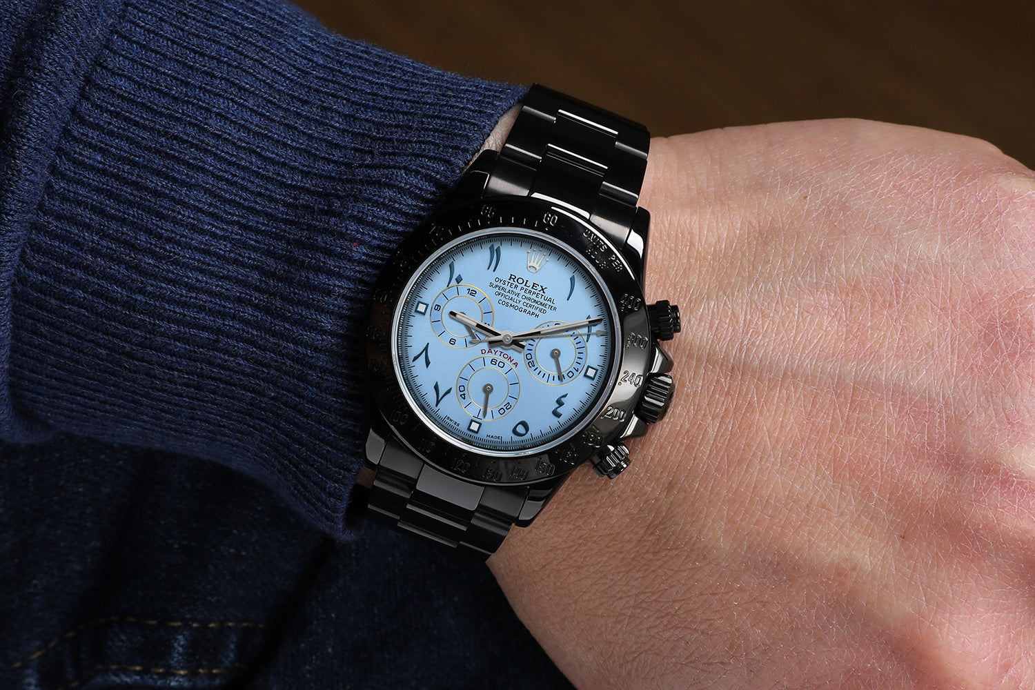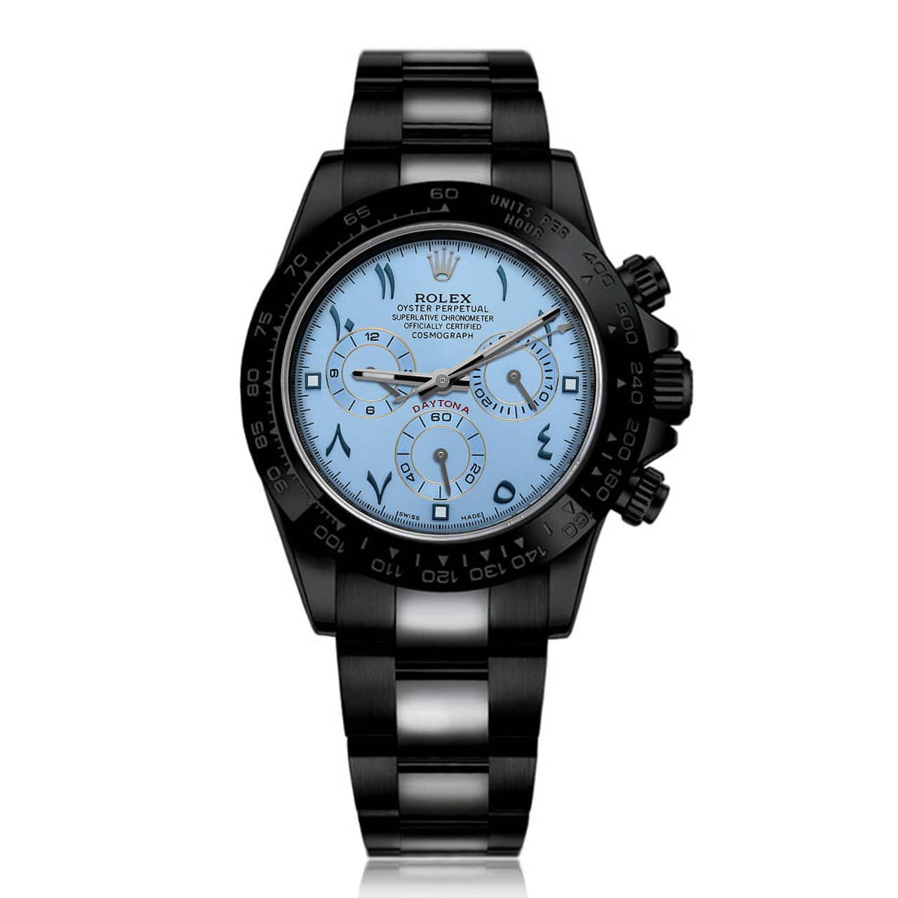 Rolex Oyster Perpetual Cosmograph Daytona Ice Blue Dial Black PVD/DLC Coated Watch 116523