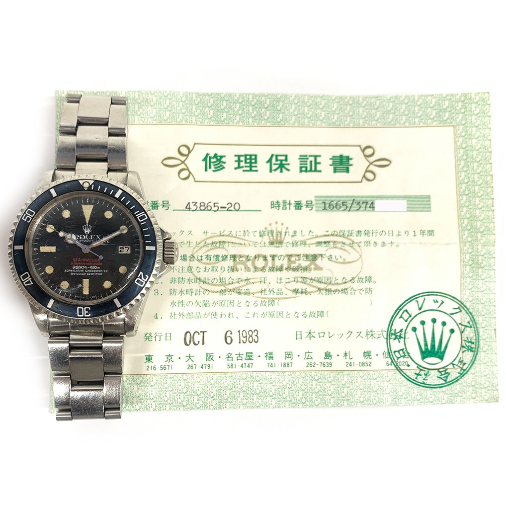 Rolex Sea-Dweller 40mm Oyster 1665 Stainless Steel Watch Black Dial 1983