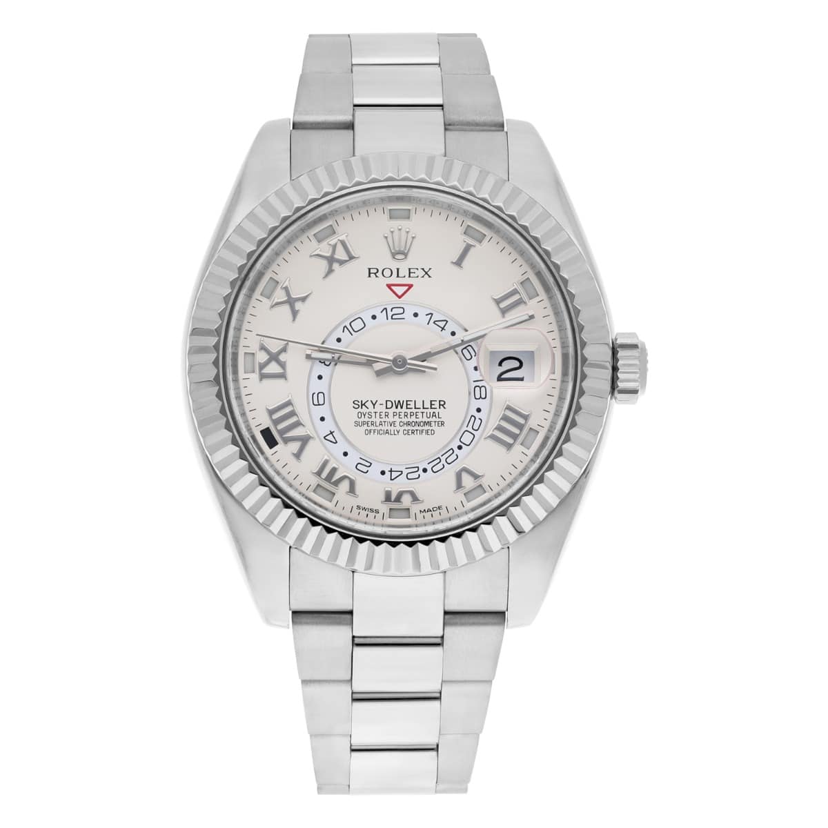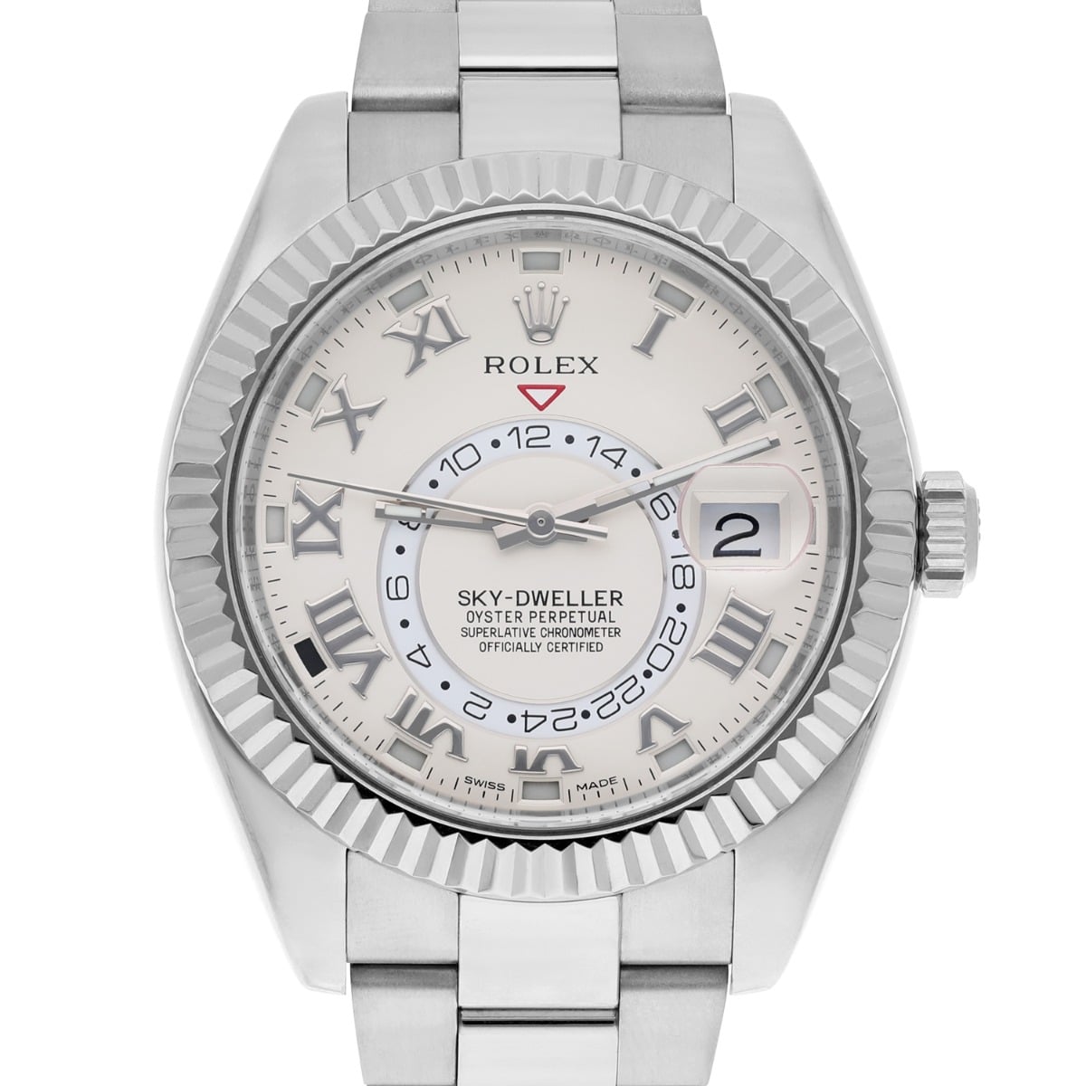 Rolex Sky Dweller 18k White Gold Ivory White Roman Dial 42mm Complete 326939