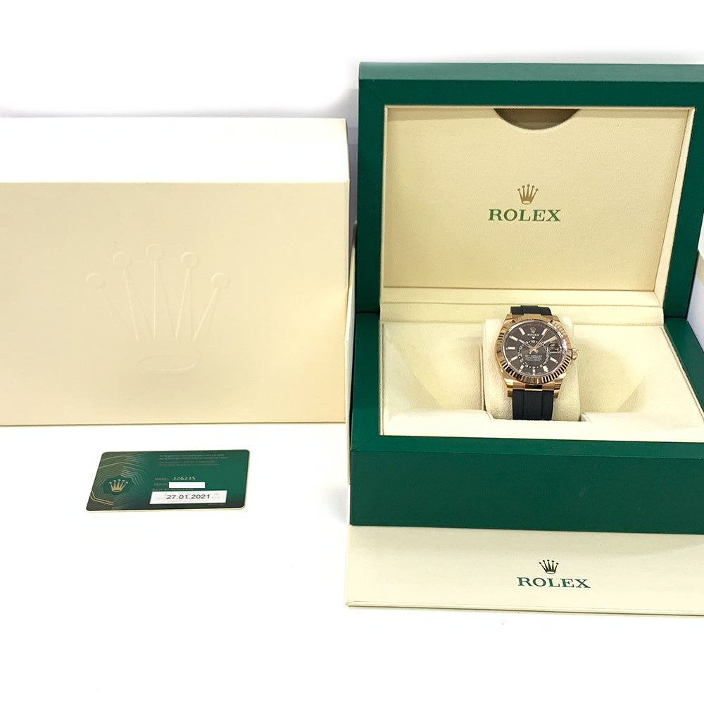Rolex Sky-Dweller 326235 Rose Gold With Black Rubber Watch Chocolate Dial 2021 MINT