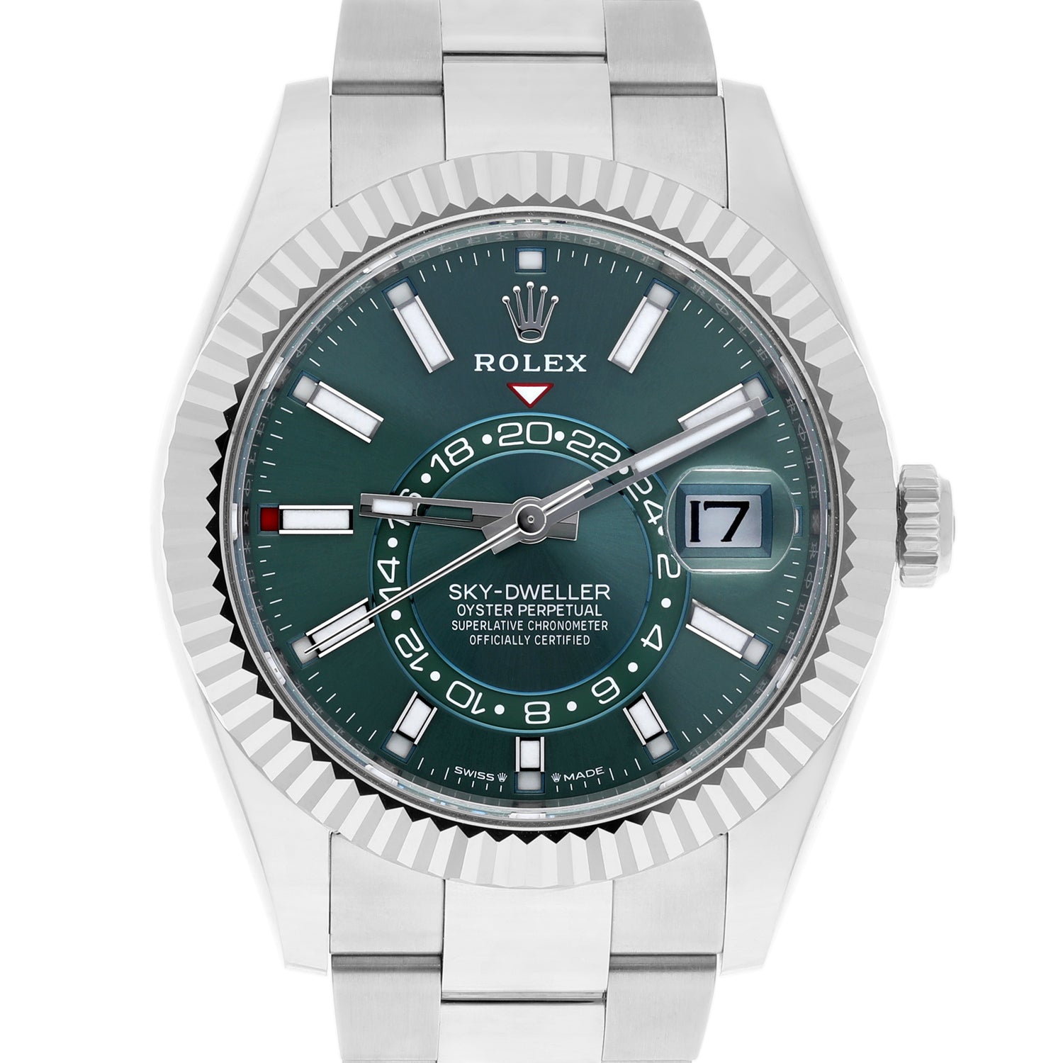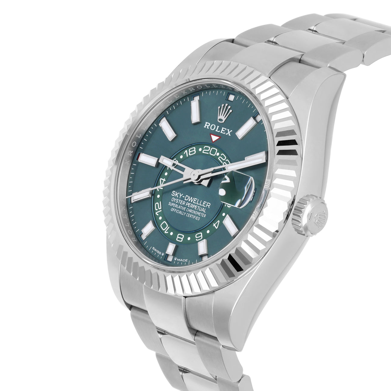 Rolex Sky-Dweller 336934 42mm Green Dial Fluted Stainless Steel Watch