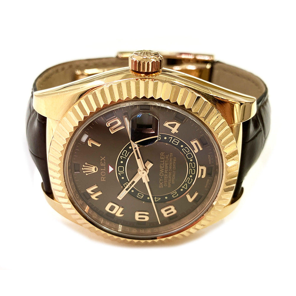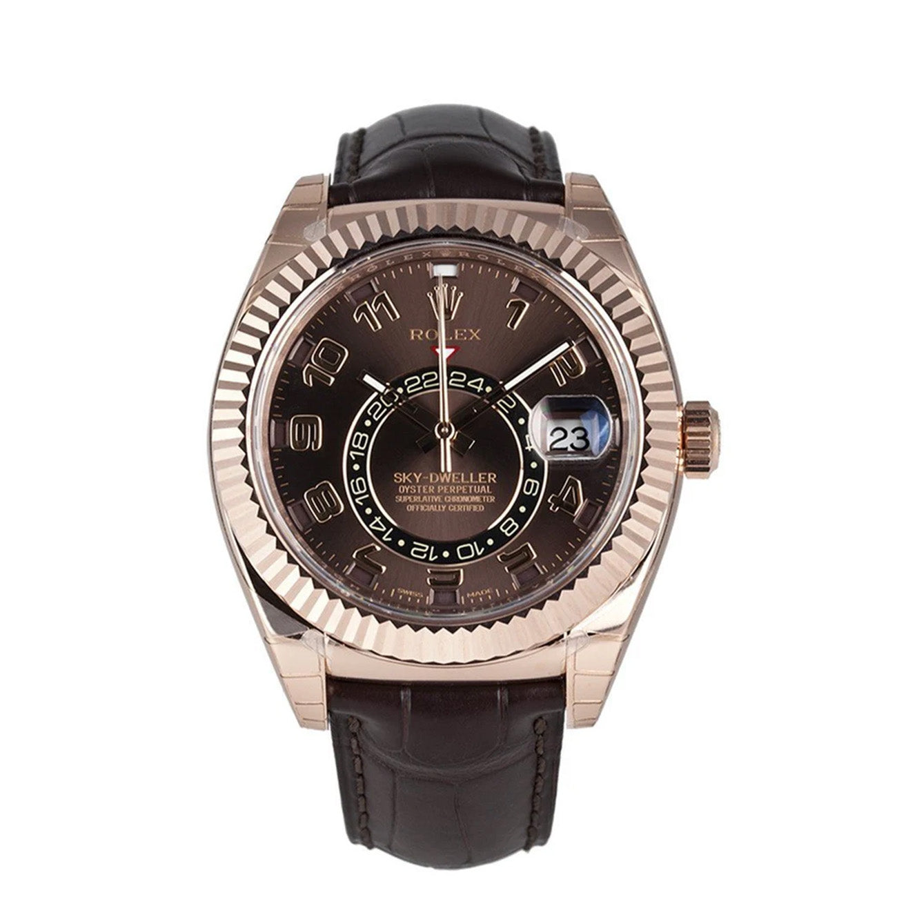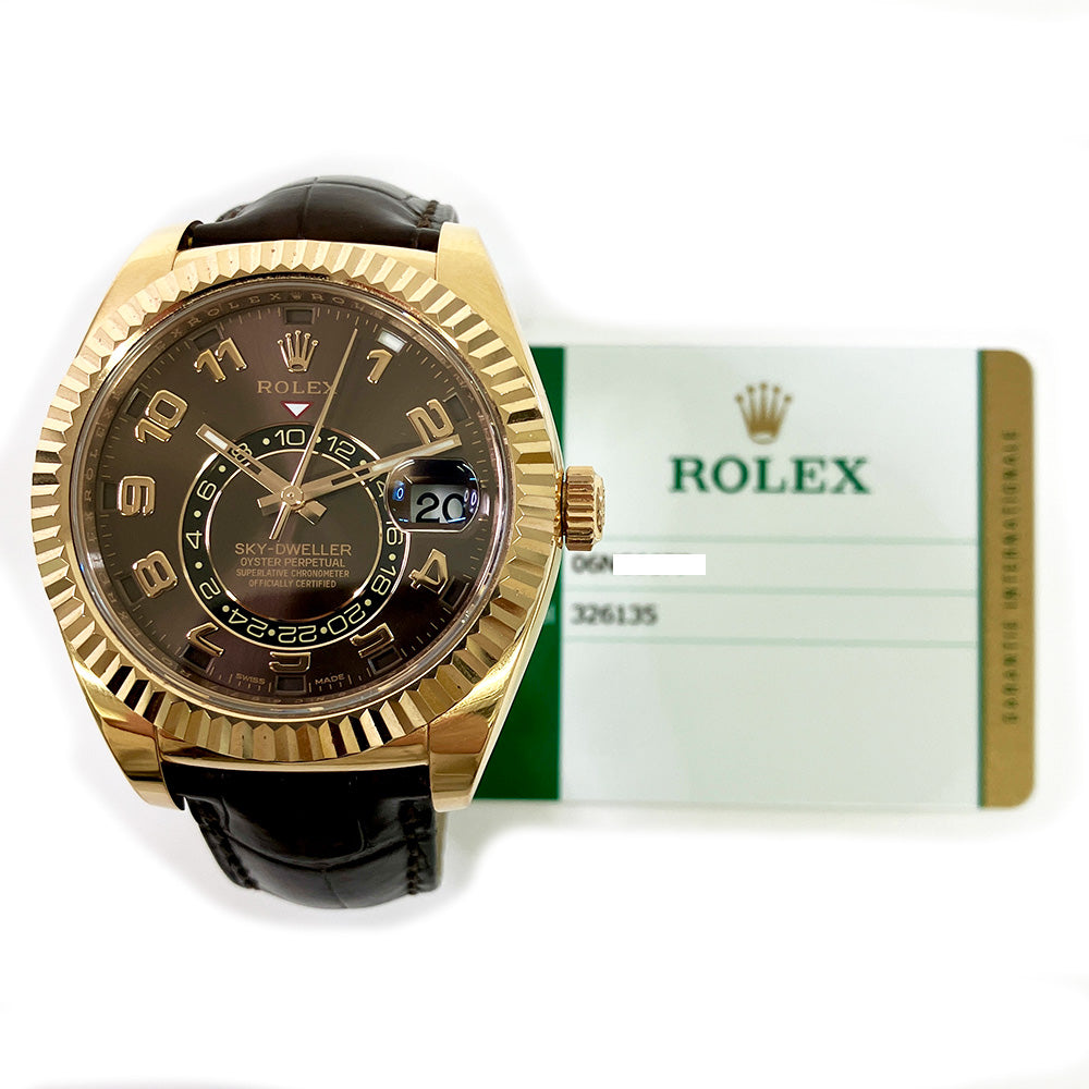 Rolex Sky-Dweller 42mm 326135 Rose Gold With Brown Leather Strap Chocolate Arabic Dial 2018