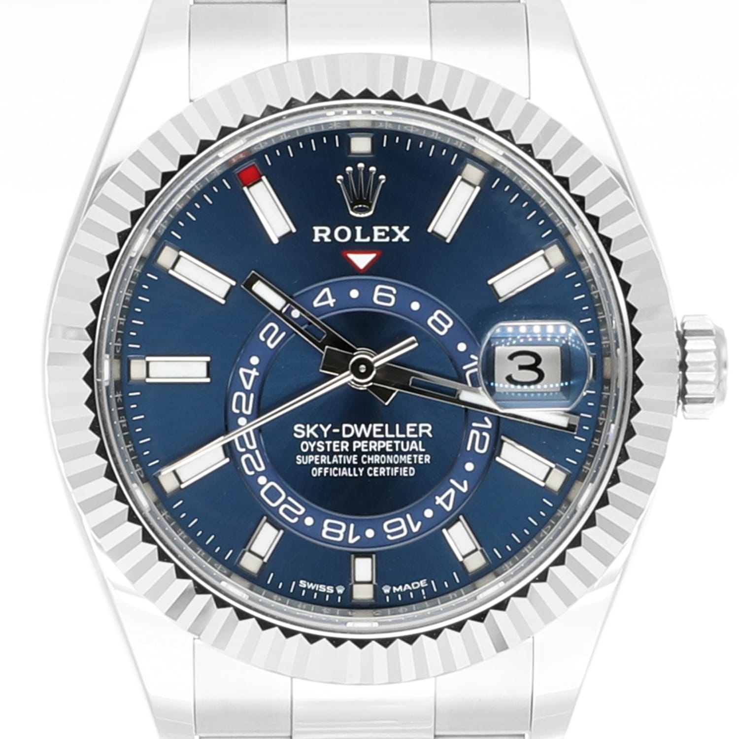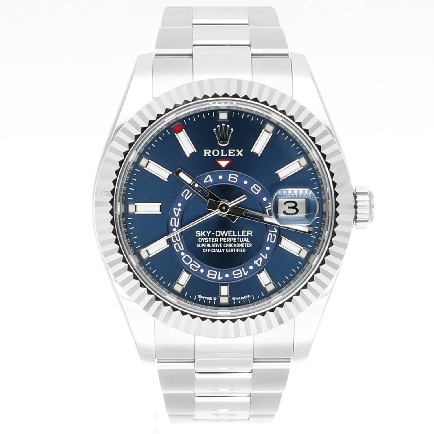 Rolex Sky-Dweller 42mm Oyster 326934 Stainless Steel & White Gold Watch Blue Dial Never Worn