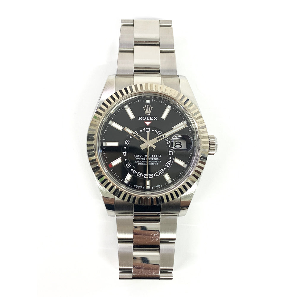 Rolex Sky-Dweller Black Dial 326934 Oyster Stainless Steel Watch White Gold Bezel 2021