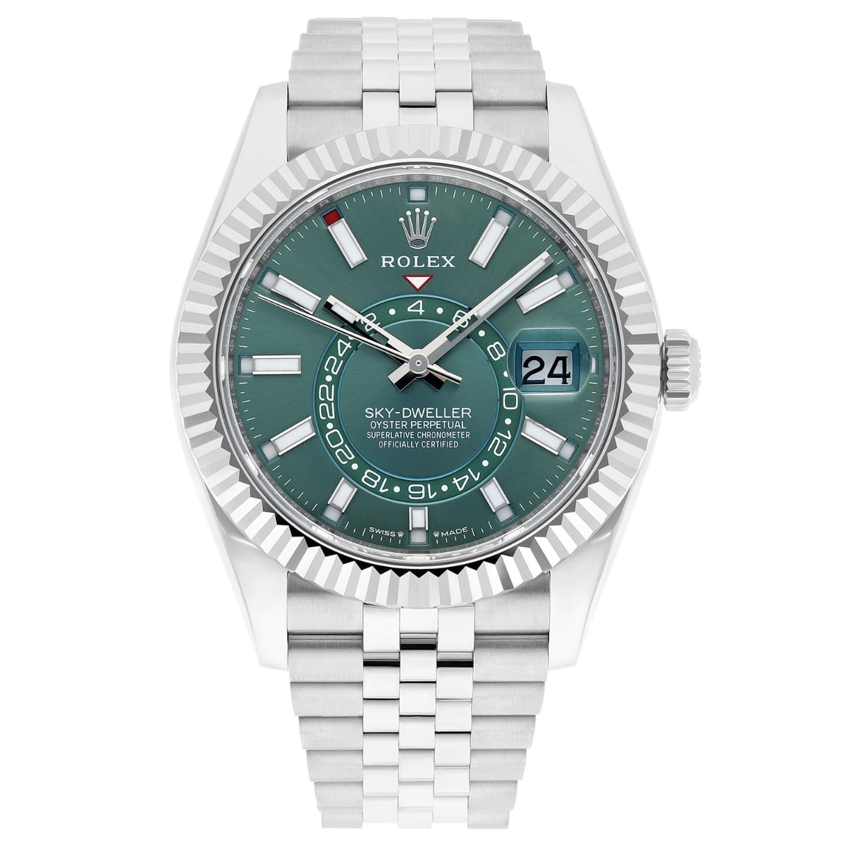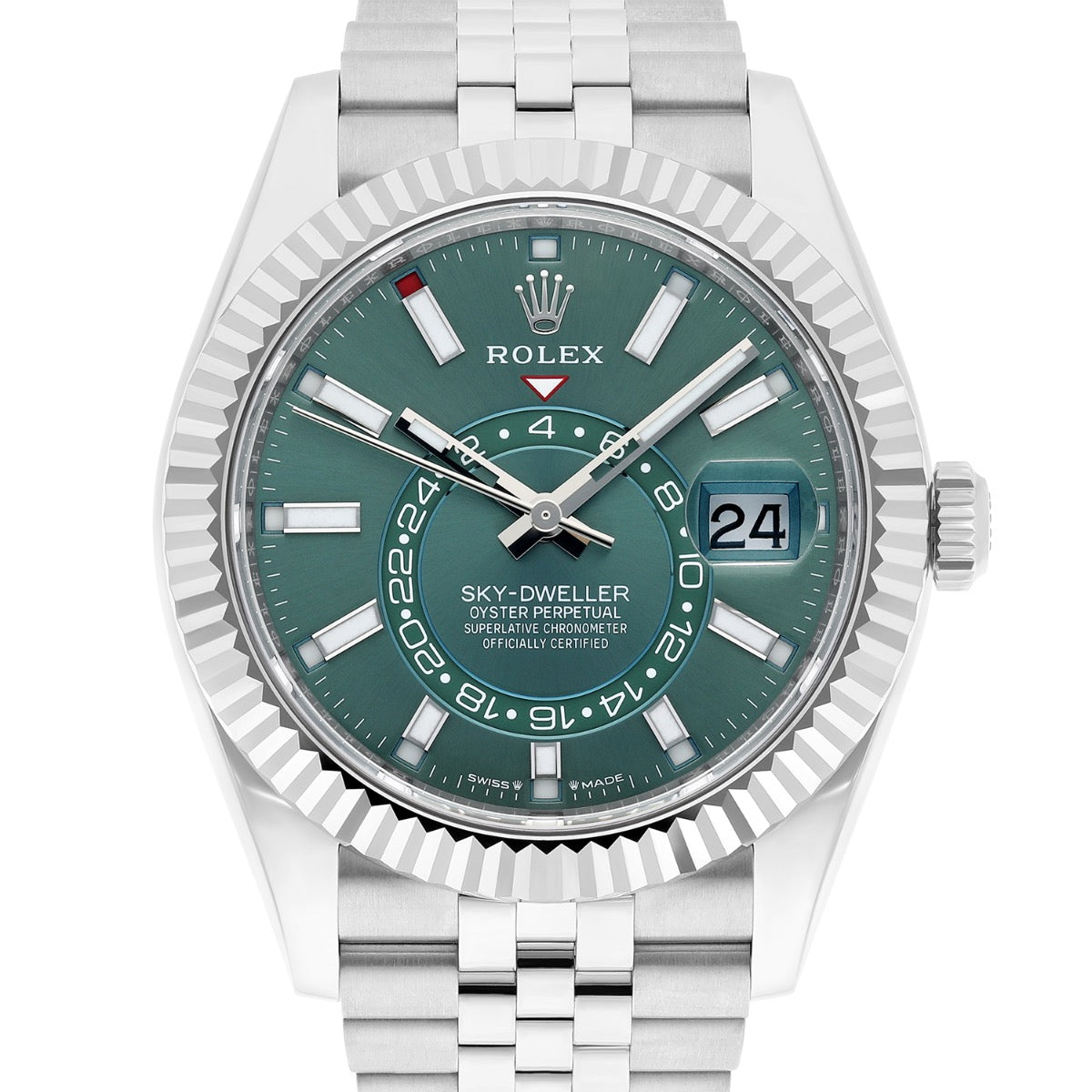 Rolex Sky-Dweller Jubilee 42mm Stainless Steel Green Dial Fluted 336934 Unworn