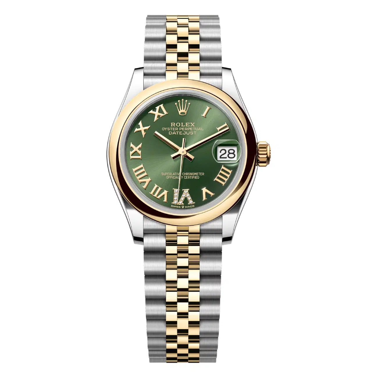Rolex Steel and Yellow Gold Datejust 31 278243-0016 Domed Bezel Green Diamond Roman Six Dial Jubilee Bracelet 2024