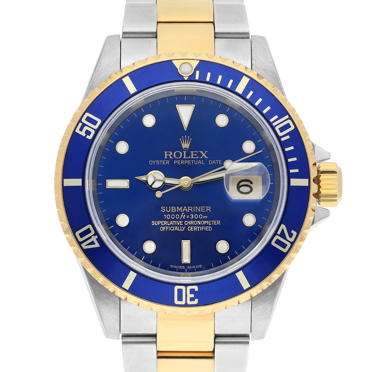 Rolex Submariner 18k Yellow Gold/Steel Blue Dial Mens Watch 16613 Circa 2005