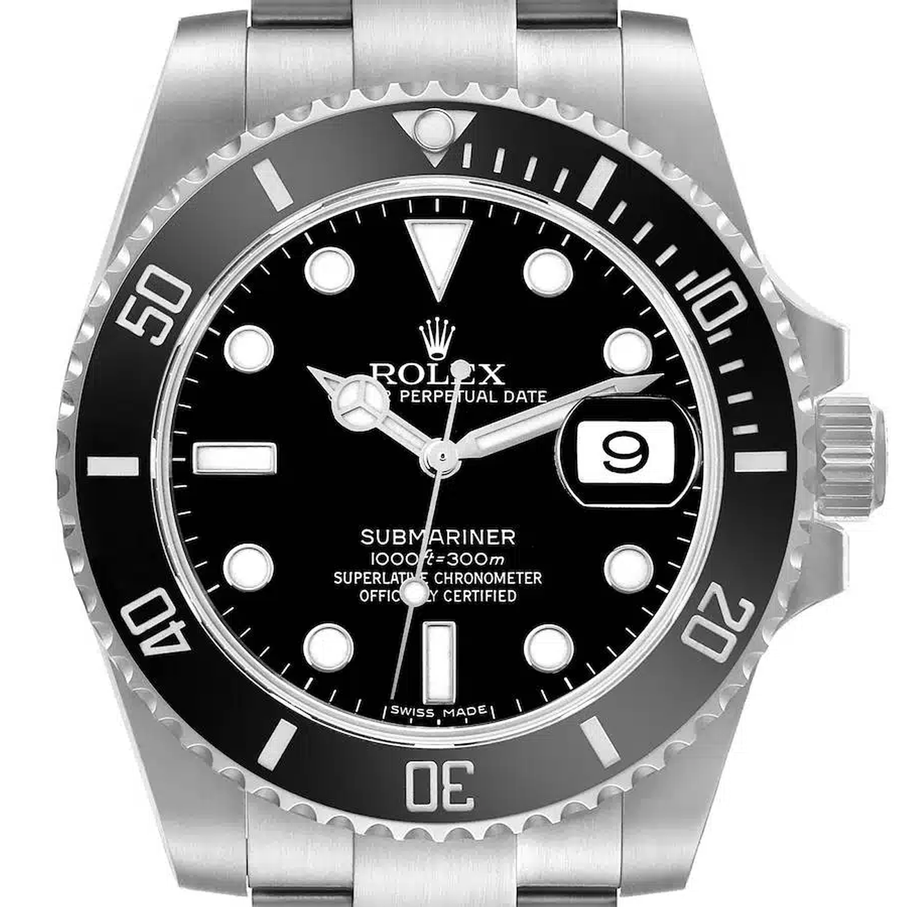 Stainless steel case with a stainless steel Rolex oyster bracelet. Uni-directional rotating black bezel with cerachrom top ring. Black dial with luminous silver-tone hands and dot hour markers. Minute markers around the outer rim. Luminescent hands and hour markers. Calendar display appears at the 3 o'clock position. Automatic movement with a 50-hour power reserve. Scratch resistant sapphire crystal. Water resistant at 300 meters / 1000 feet. Functions: hours, minutes, seconds, date.