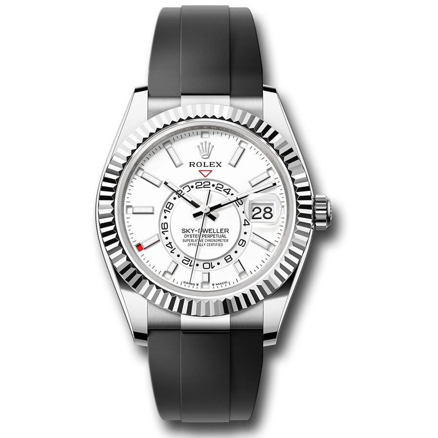 Rolex White Gold Sky-Dweller 336239-0003 Fluted Bezel White Index Dial Oysterflex Strap Watch 2024