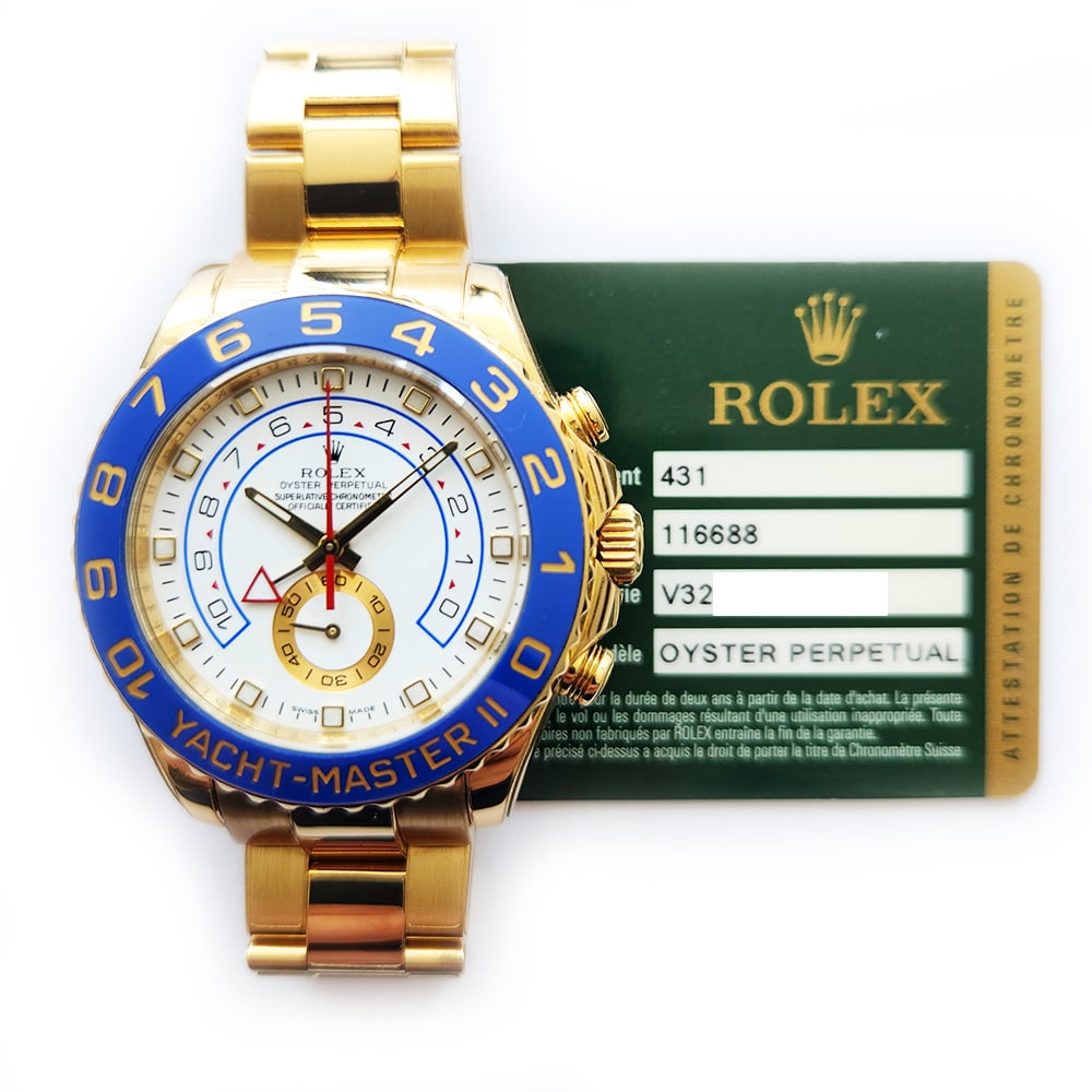 Rolex Yacht-Master II 44mm Oyster 116688 Yellow Gold Watch White Dial 2013