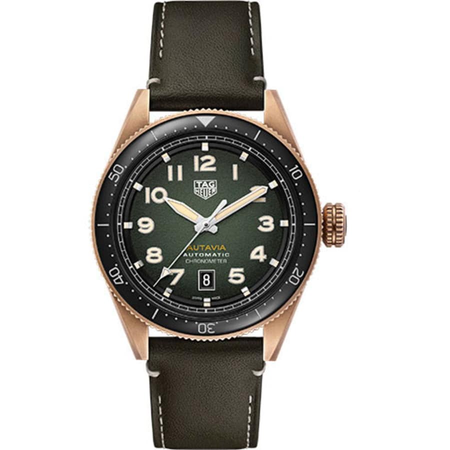 Tag Heuer Autavia Automatic WBE5190.FC8268 Bronze Case Green Dial Black Leather Strap Watch 2024