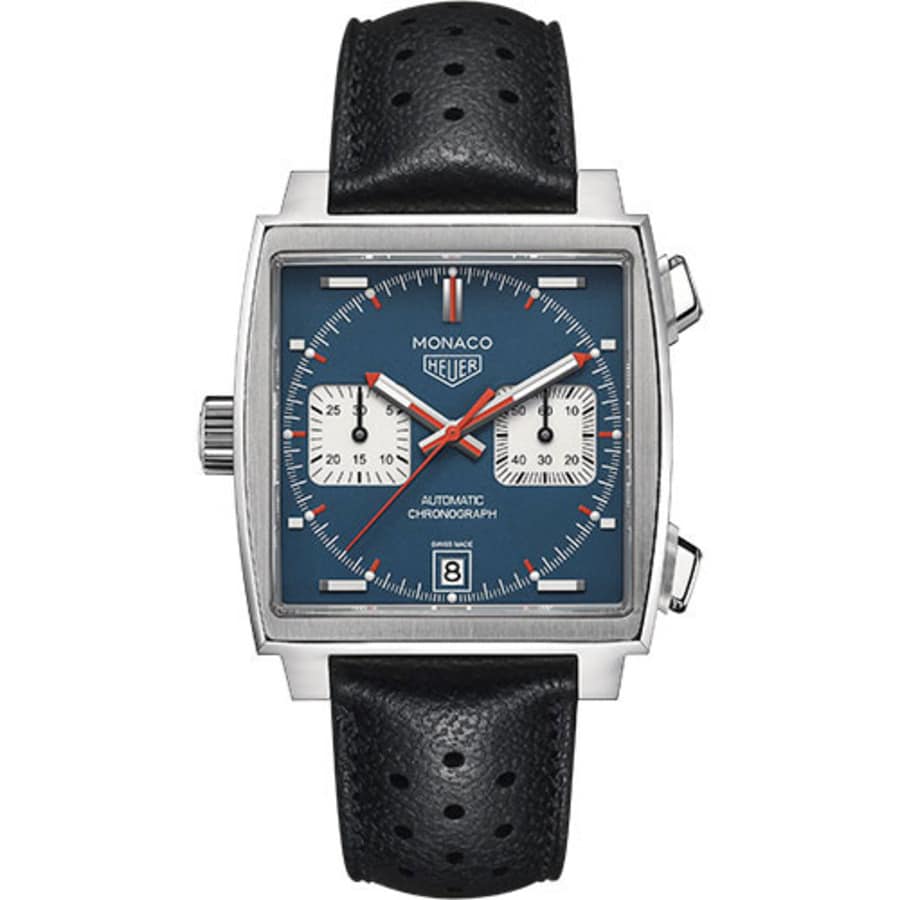 Tag Heuer CAW211P.FC6356 Monaco Automatic Chronograph 39 mm Steel Case Blue Dial Leather Strap Watch 2024